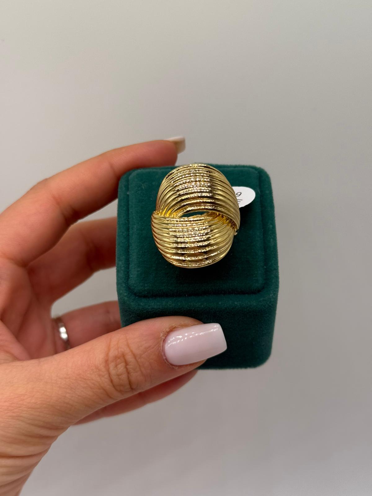 Katmanlı formuyla dikkat çeken bu altın yüzük, modern tasarımı ve güçlü duruşuyla stiline sofistike bir dokunuş katar. Günlük kombinlerden özel davetlere kadar her anınıza eşlik eder.