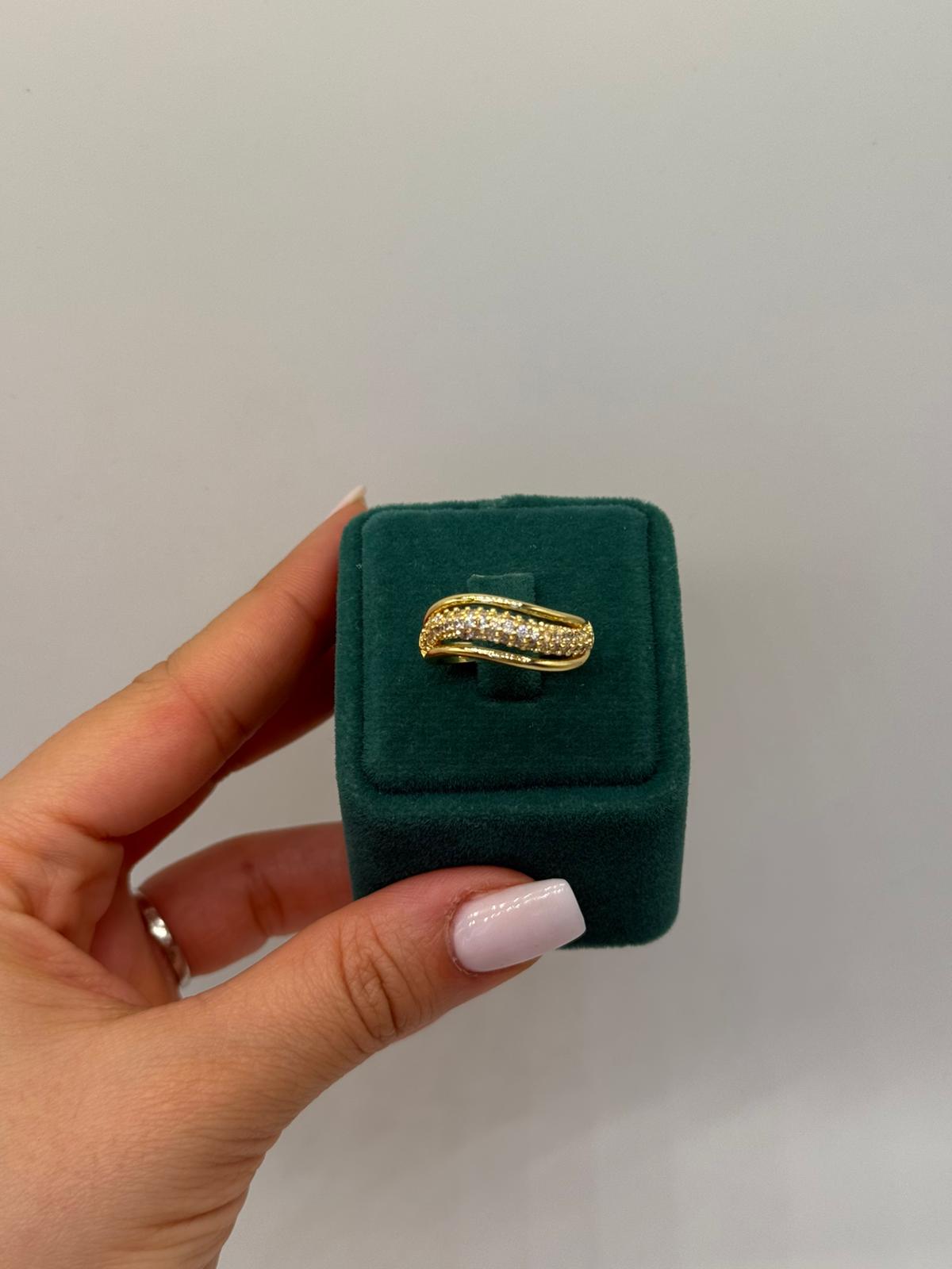 Altın Işıltı Xuping Yüzük, akıcı formu ve taşlı orta bandıyla sade şıklığı ön plana çıkarır. Parlak altın rengi kaplaması ve özenle dizilmiş taş detayları sayesinde zarif bir ışıltı sunar. Günlük kullanıma uygun hafif ve konforlu yapısıyla, tek başına şık bir tamamlayıcı olduğu gibi farklı yüzüklerle kombinlenerek de modern bir stil yaratır. Zamansız tasarımı sayesinde her yaş ve tarza kolayca uyum sağlar.