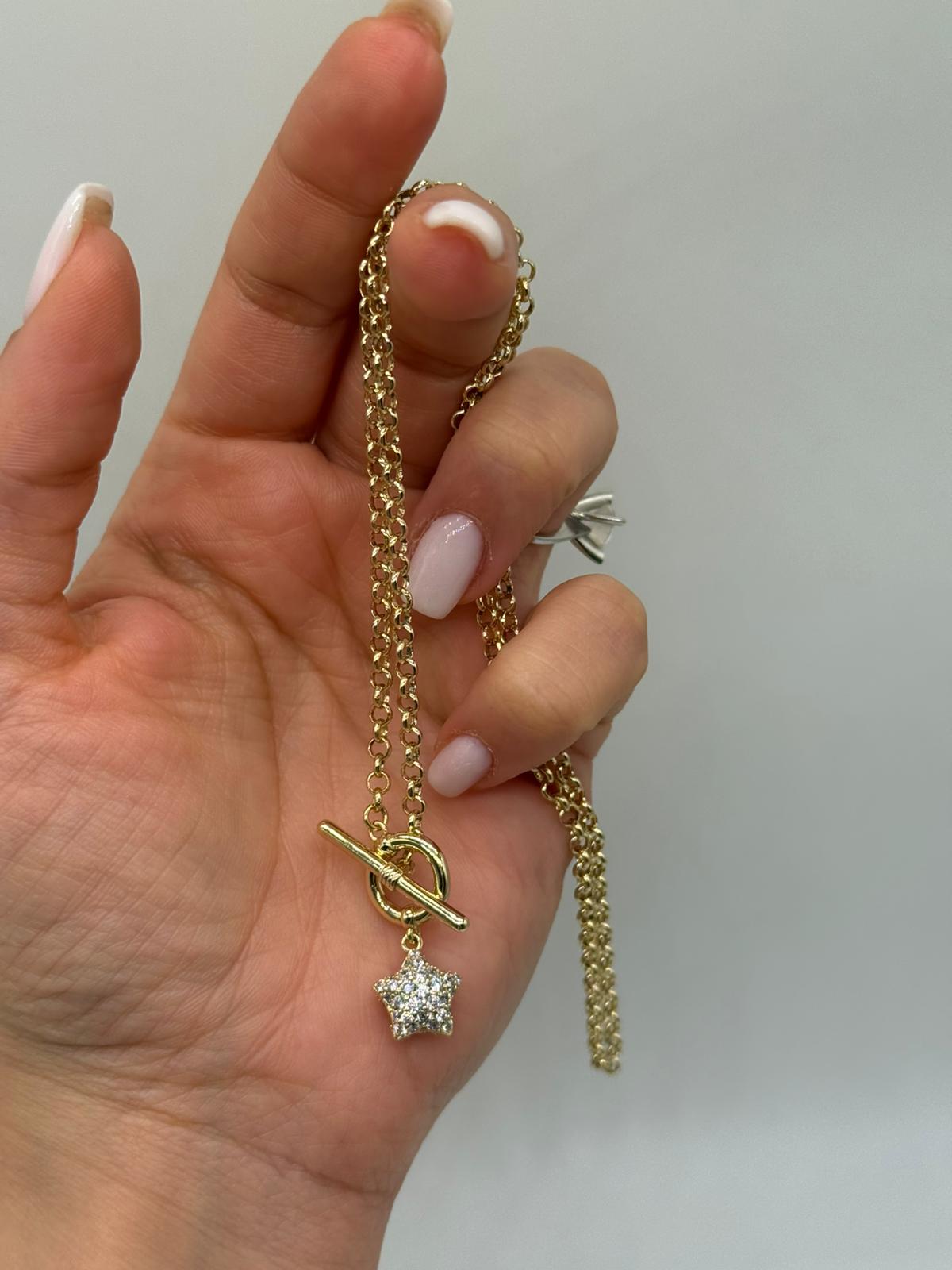 Altın Yıldız Detaylı Xuping Kolye, sade zincir yapısı ve ön kısmında yer alan taşlı yıldız figürüyle zarif bir şıklık sunar. Altın rengi kaplaması, yıldız formundaki parlak taş detaylarıyla birleşerek minimal ama etkileyici bir görünüm oluşturur. Günlük kombinlerde rahatlıkla kullanılabilirken, özel anlarda da şık bir tamamlayıcı olarak öne çıkar. Zamansız tasarımı sayesinde her yaş ve tarza uyum sağlayan ideal bir aksesuardır.