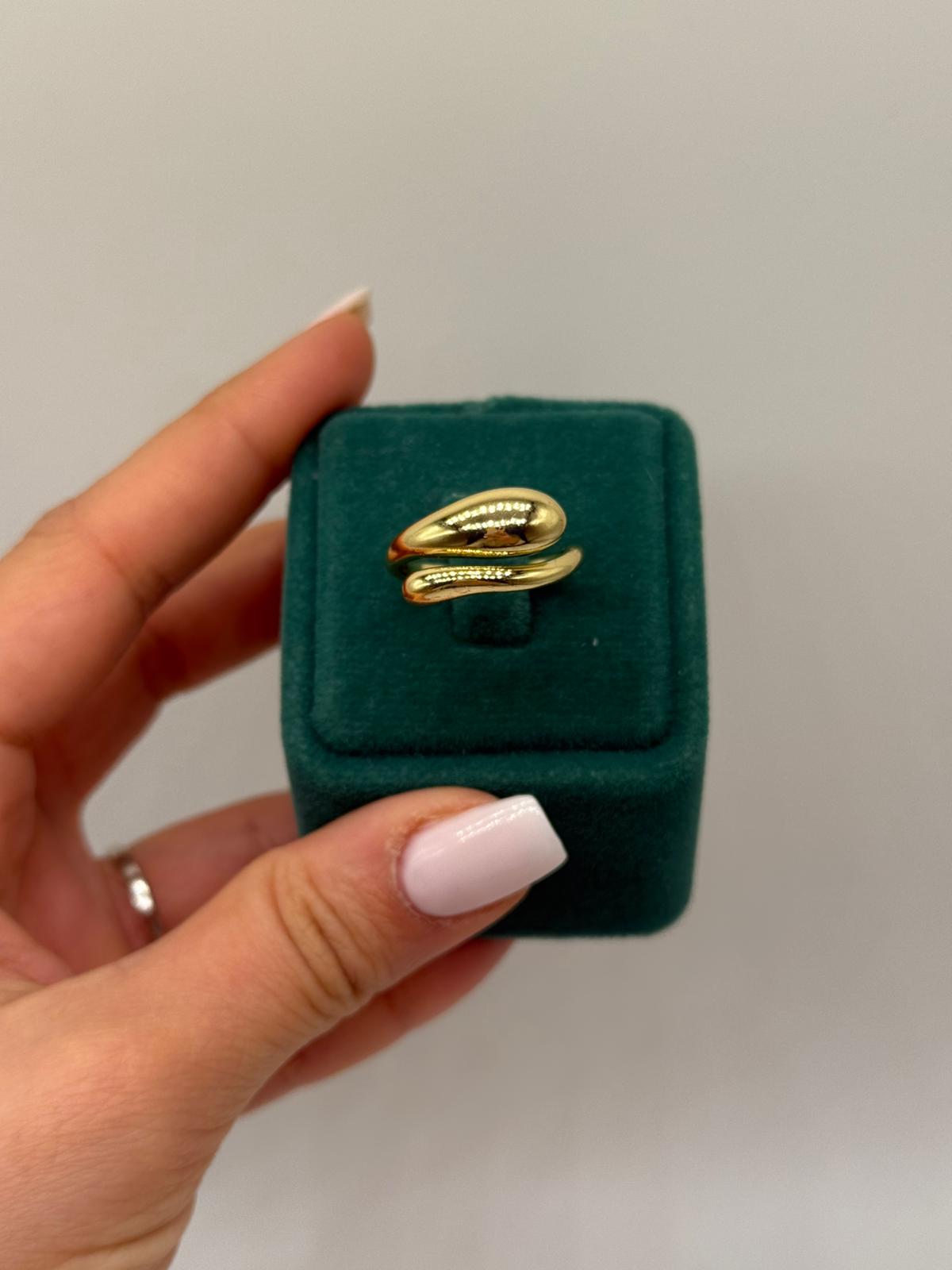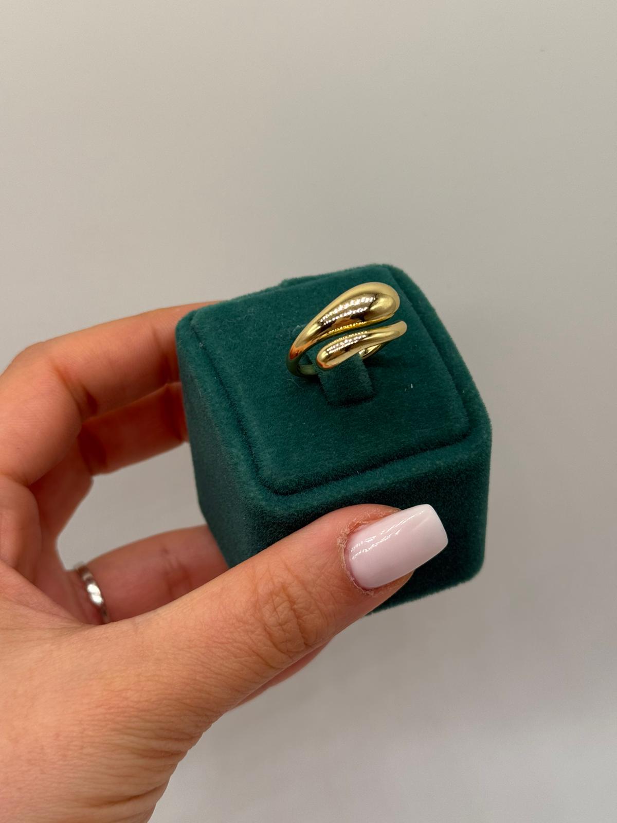 Akışkan hatları ve pürüzsüz yüzeyiyle tasarlanan bu altın yüzük, modern ve heykelsi bir şıklık sunar. Yumuşak kıvrımları sayesinde ışığı zarif bir şekilde yansıtarak güçlü ama sade bir görünüm oluşturur.