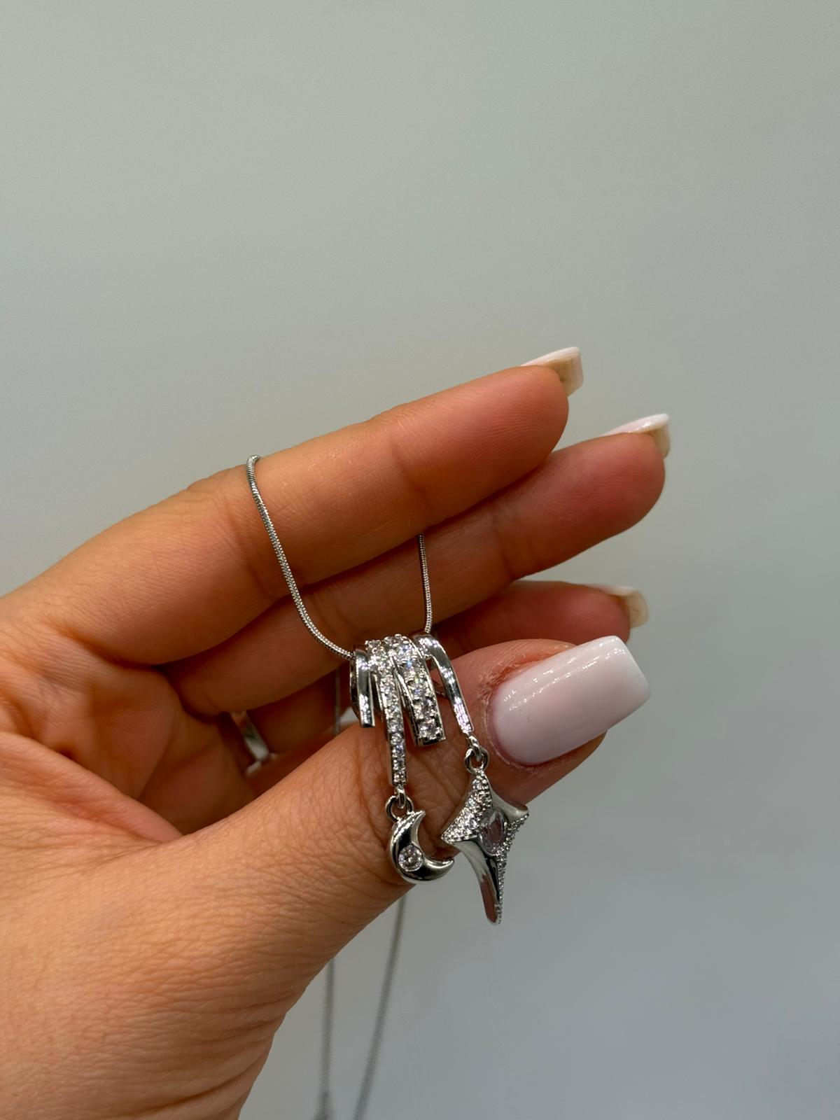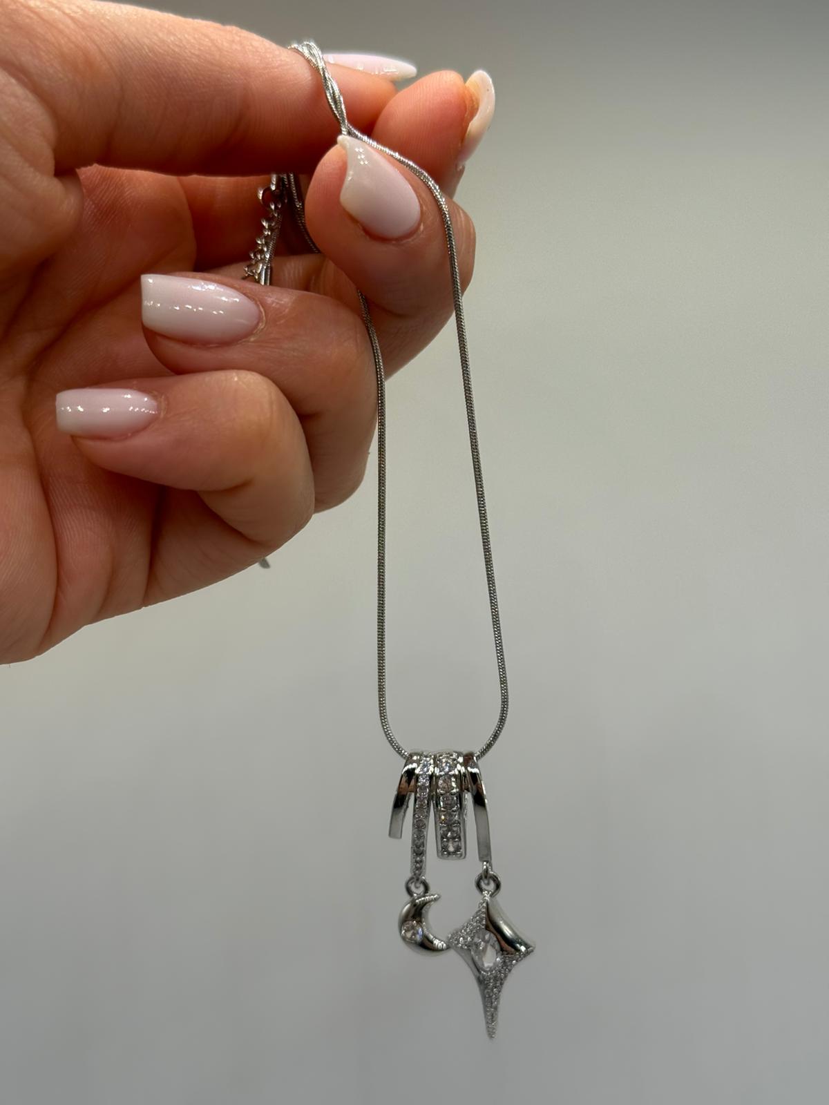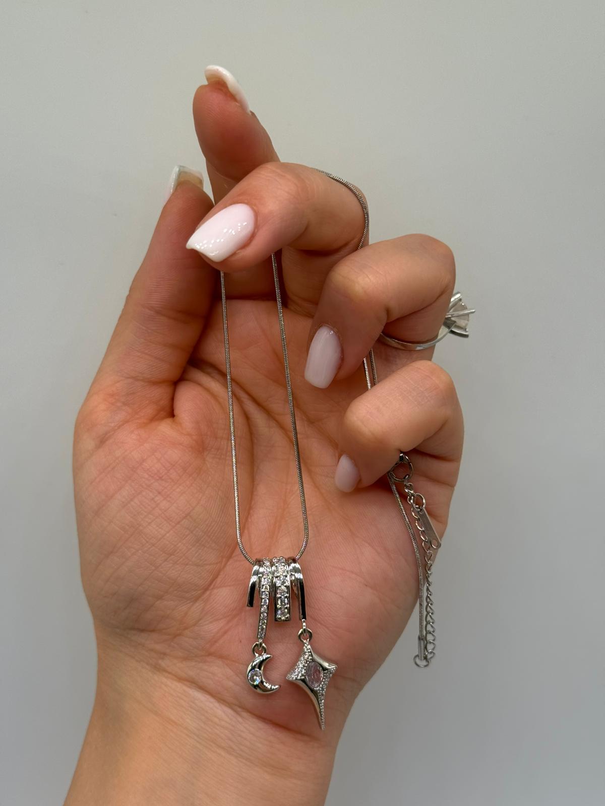 Ay ve yıldız figürlerinden ilham alan bu sallantılı kolye, modern ve romantik detayları bir arada sunar.