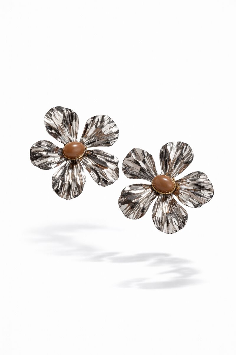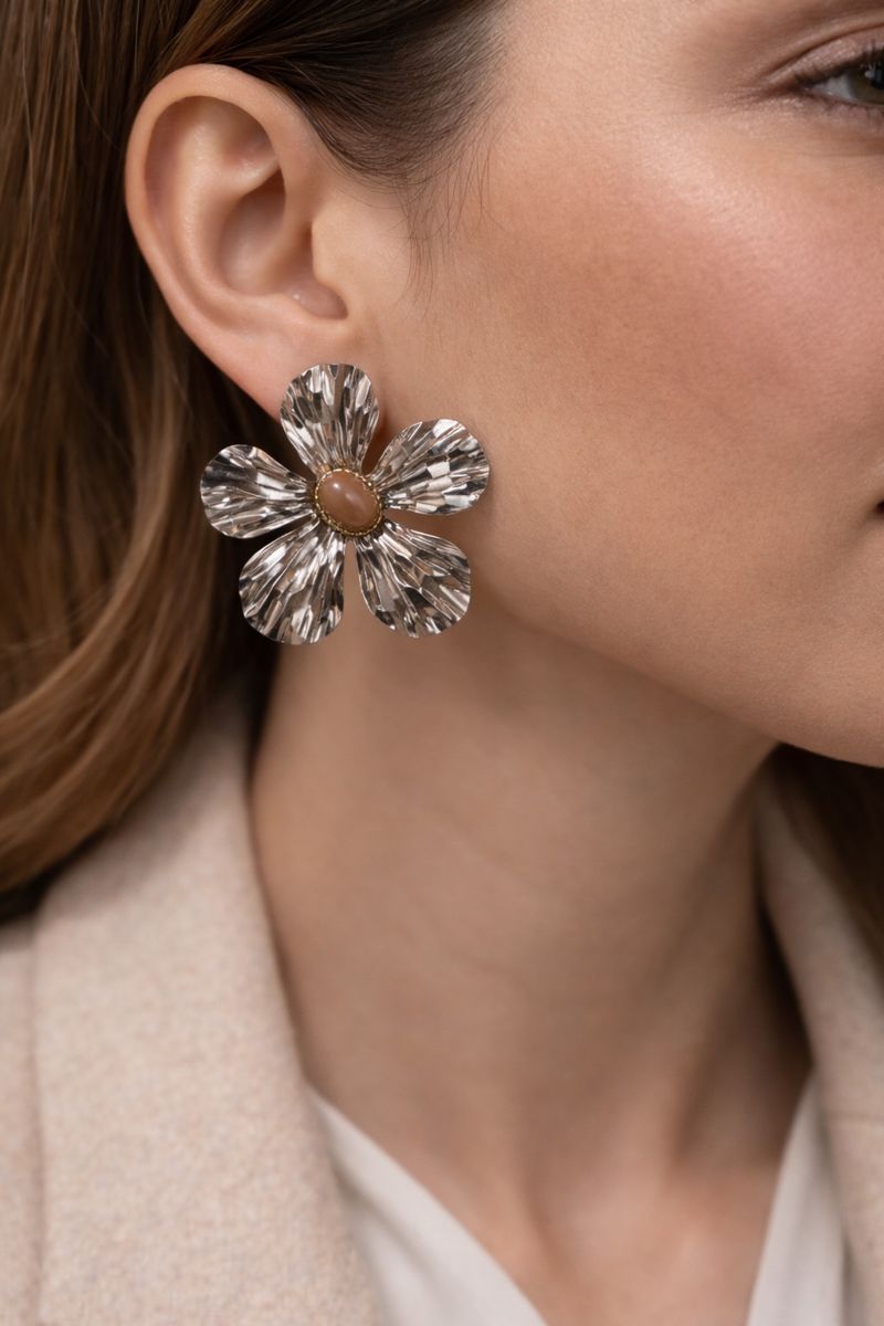 Çiçek Form Dokulu VIP Çelik Küpe, doğadan ilham alan tasarımıyla sade ama güçlü bir şıklık sunar. Gümüş tonlu, dokulu yaprak detayları ışığı farklı açılardan yansıtarak küpeye hareketli ve sofistike bir görünüm kazandırır.