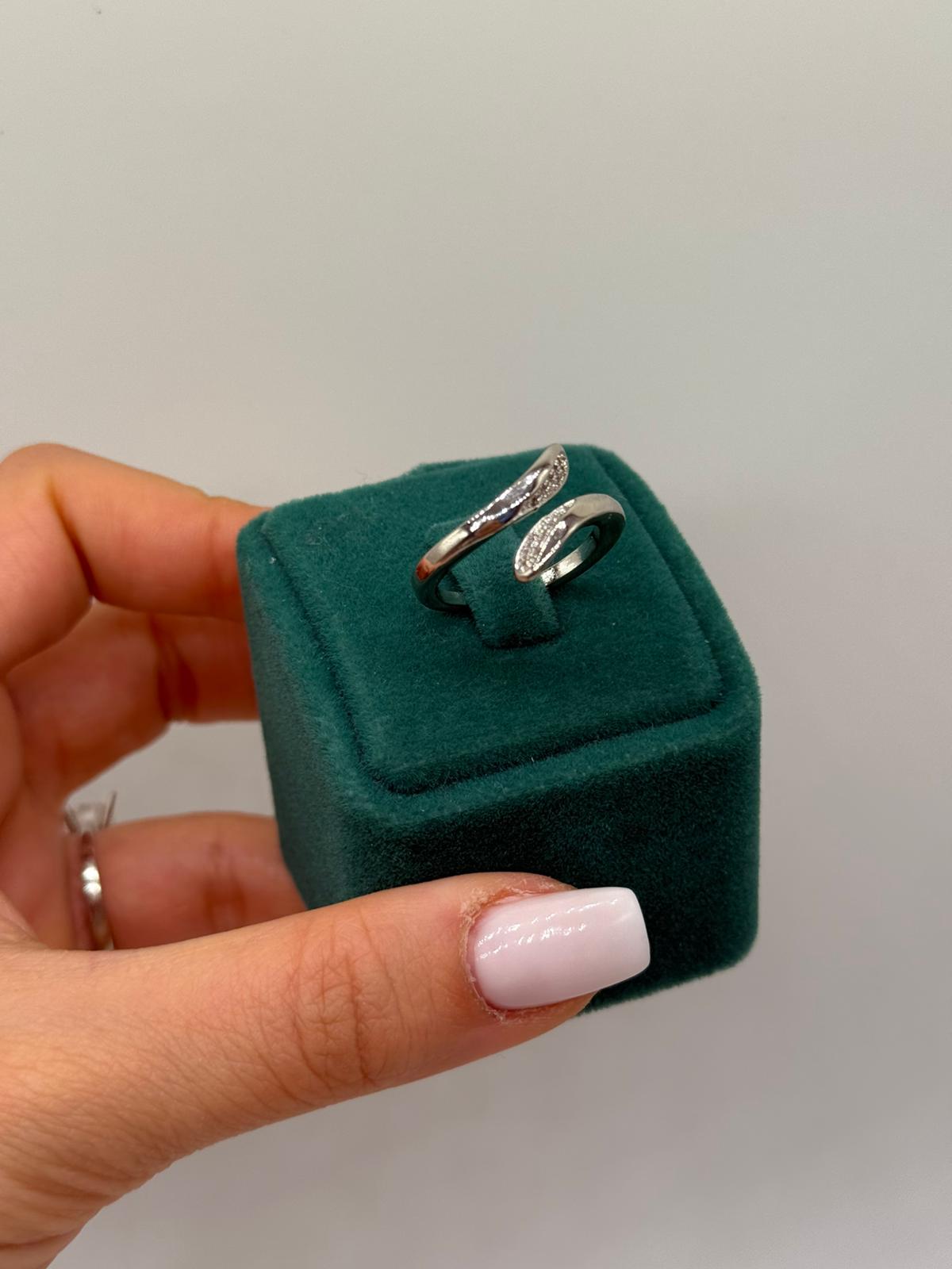 Dalga formundan ilham alan modern tasarımıyla öne çıkan bu gümüş ton yüzük, zarif taş detaylarıyla şıklığını tamamlar. Açık uçlu yapısı sayesinde parmakta rahat bir kullanım sunar ve farklı stillere kolayca uyum sağlar.