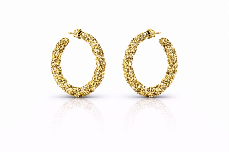 Fi Jewels koleksiyonunda yer alan dokulu gold halka form kadın küpe, klasik halka küpe tasarımını modern ve dikkat çekici bir dokunuşla yeniden yorumlar.