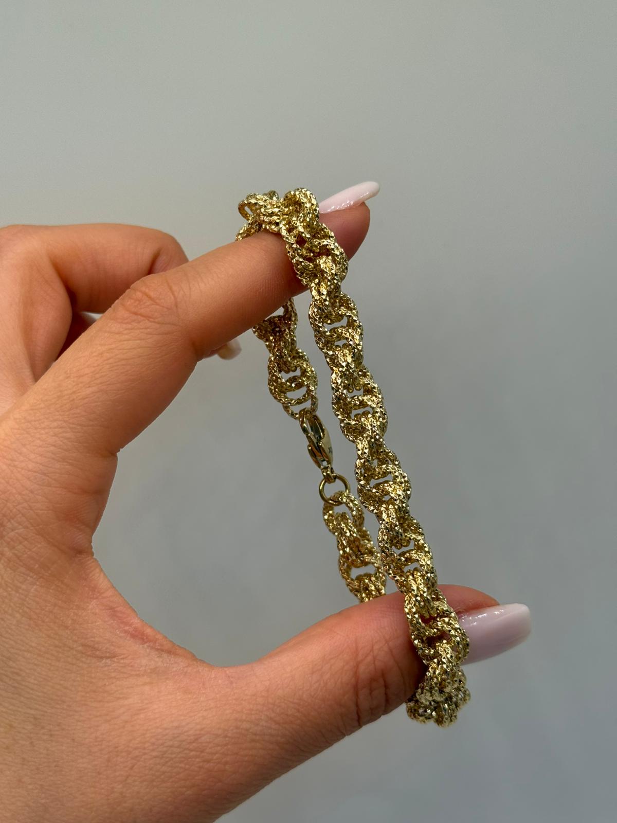 Özel dokulu (kumlu) yüzey detaylarıyla tasarlanan bu Xuping VIP çelik kadın bileklik, klasik zincir formunu güçlü ve iddialı bir stille buluşturur. Işığı farklı açılardan yansıtan yüzeyi sayesinde bilekte yoğun bir parlaklık ve dolgun bir görünüm oluşturur.