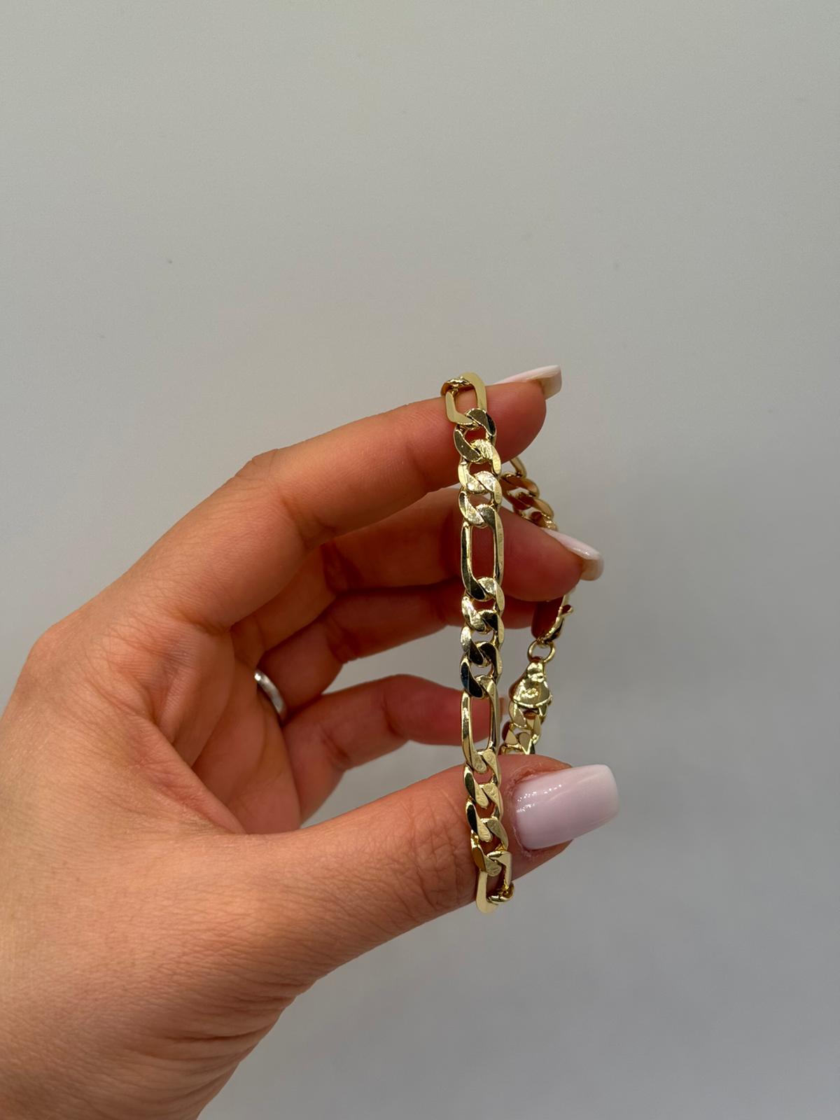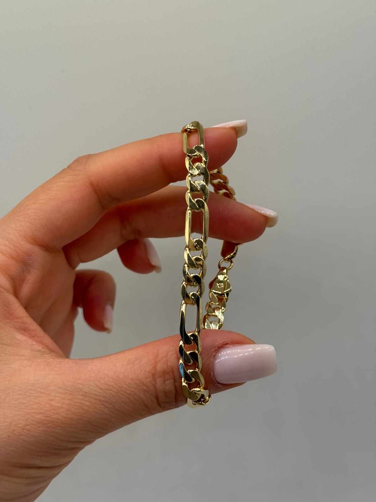 Klasik Figaro zincir tasarımıyla öne çıkan bu Xuping VIP çelik kadın bileklik, uzun ve kısa halkaların ritmik dizilimi sayesinde bilekte şık ve dengeli bir duruş sunar. Taşsız yapısı ile sade, net ve zamansız bir görünüm sağlar.