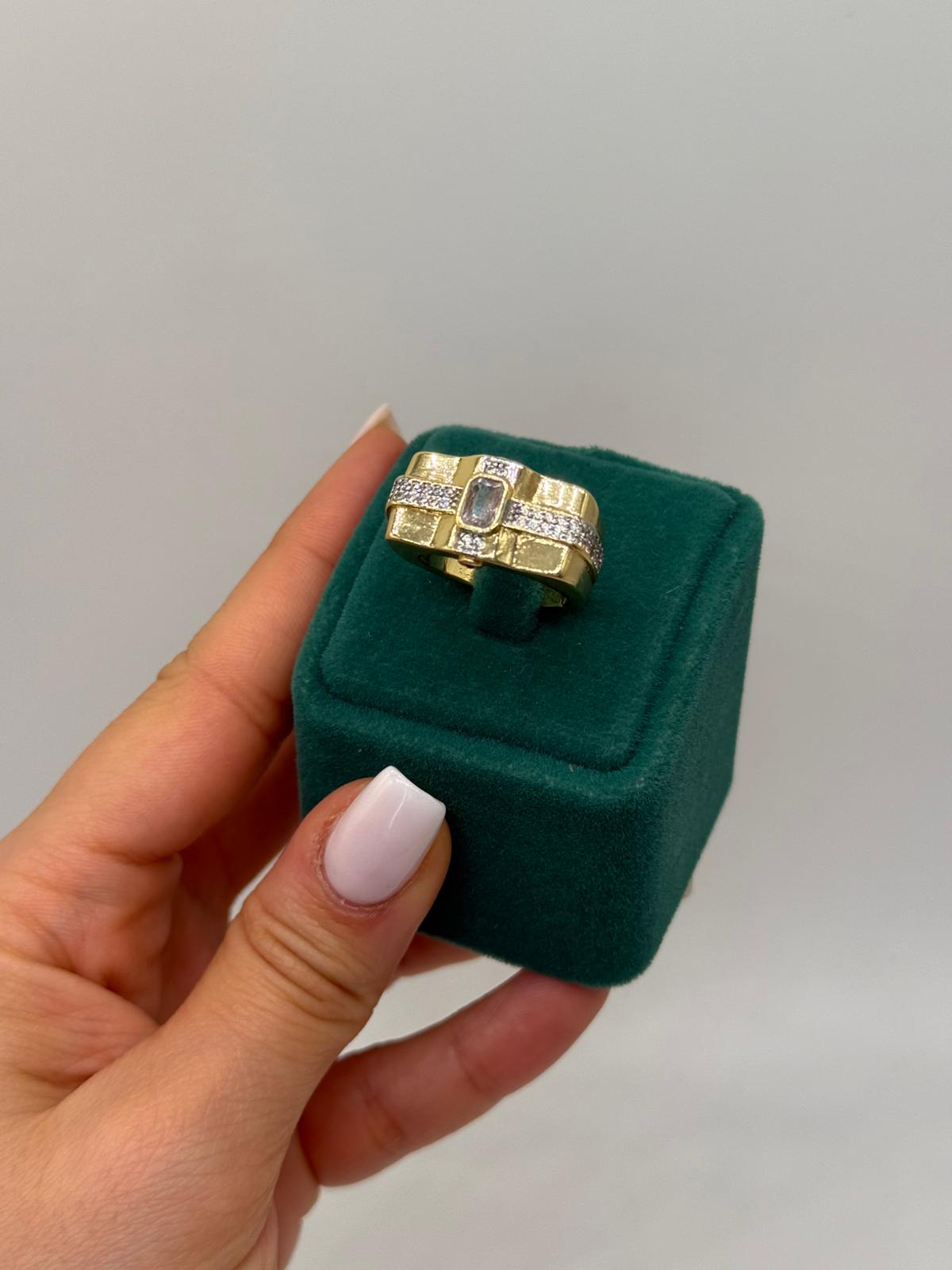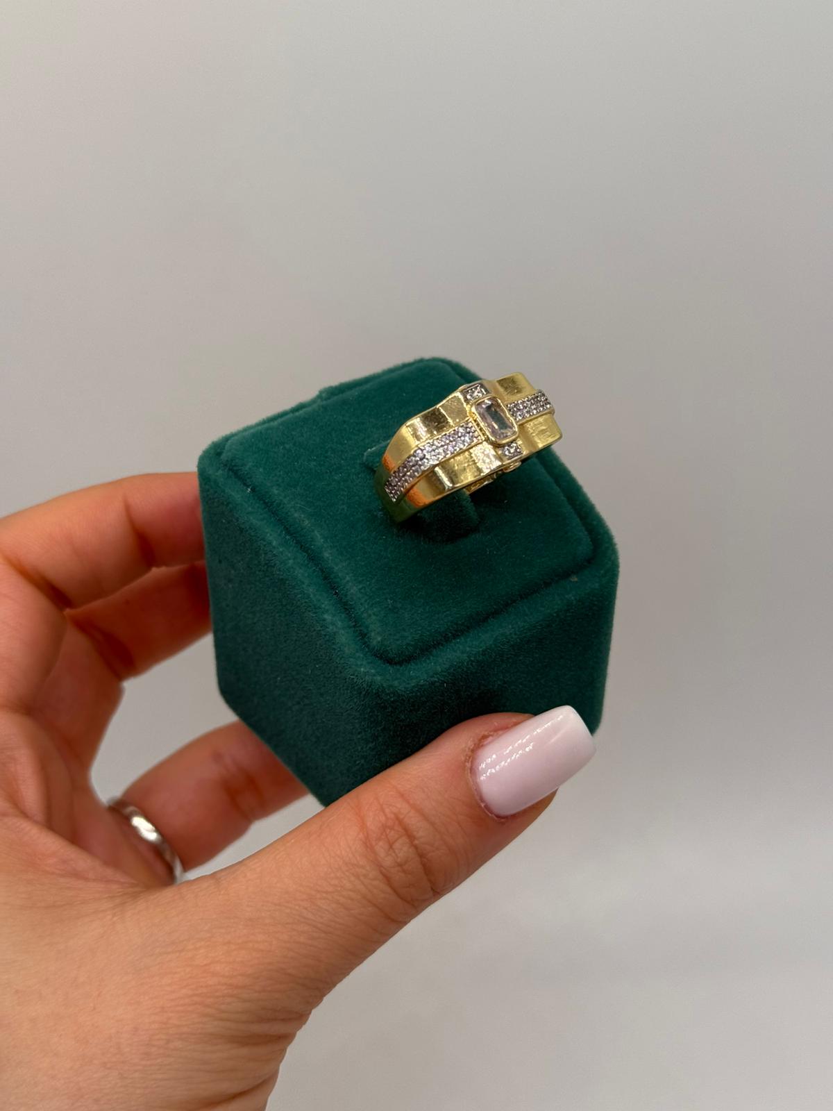 Modern çizgilerle tasarlanan bu yüzük; klasik şıklığı güçlü bir stil anlayışıyla birleştirir. Günlük kombinlerde fark yaratmak, özel davetlerde ise etkileyici bir tamamlayıcı kullanmak isteyenler için ideal bir seçimdir. Tek başına kullanıldığında bile stilin merkezinde yer alır.