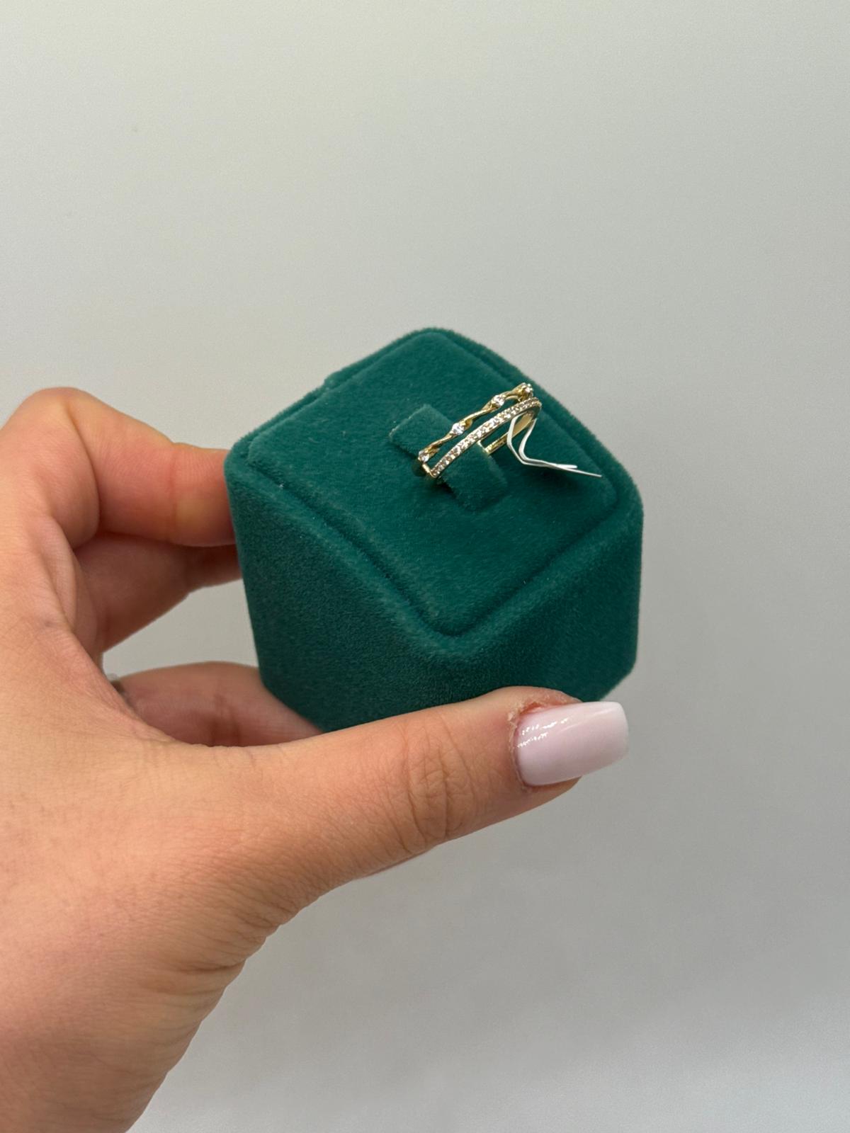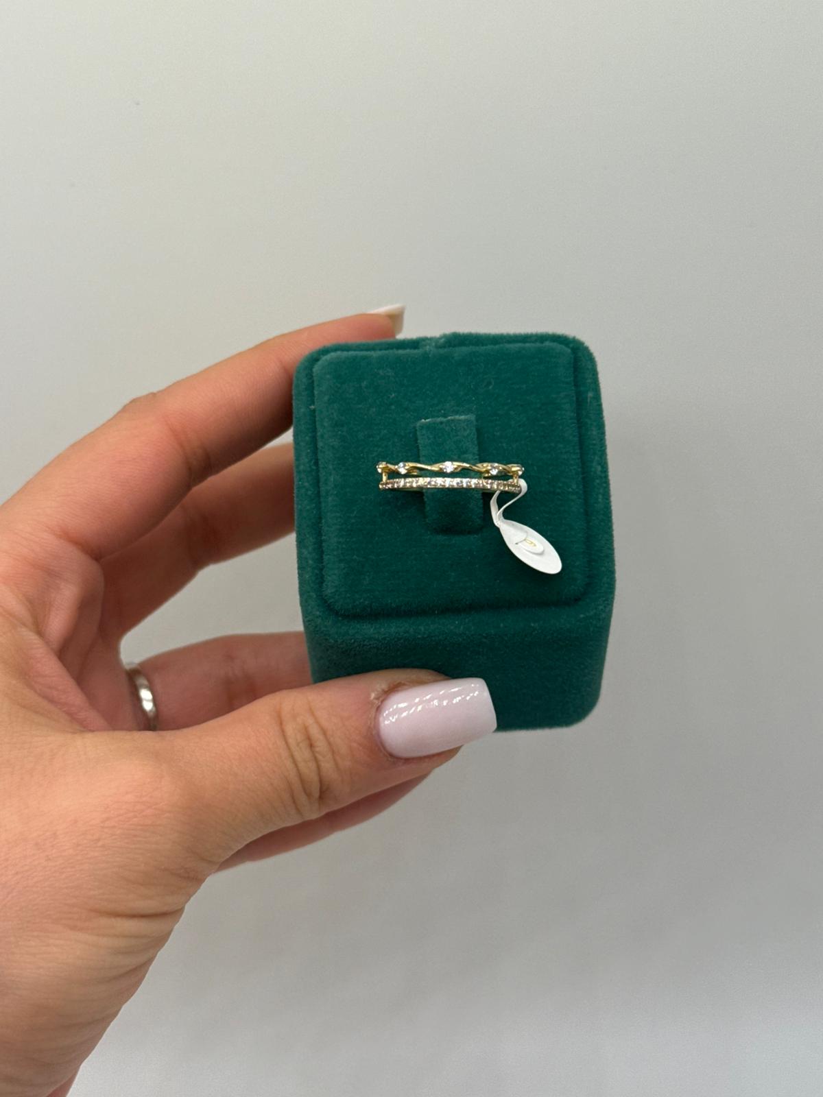İnce zincir formu ve zarif taş detaylarıyla tasarlanan bu gold yüzük, minimal şıklığı sevenler için ideal bir tamamlayıcıdır. Çift katmanlı görünümü sayesinde tek başına zarif bir ışıltı sunarken, farklı yüzüklerle birlikte kullanıldığında modern bir stil oluşturur.