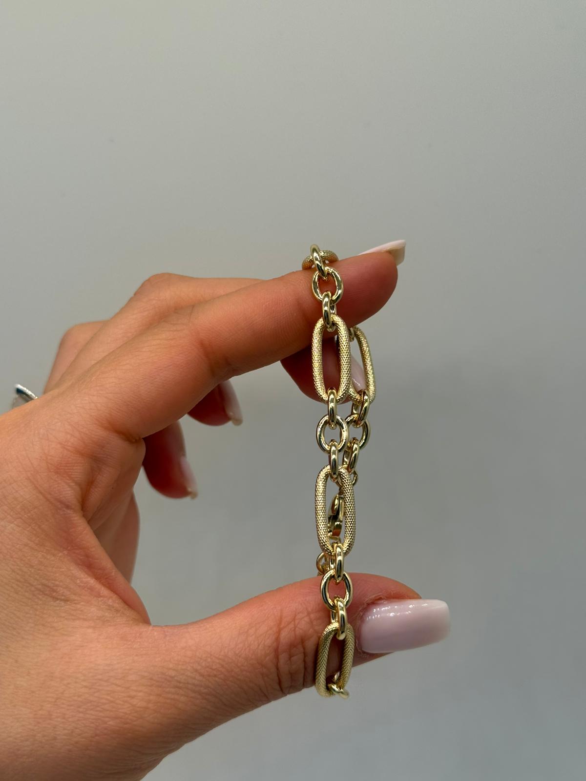 Zamansız ve sade tasarımıyla öne çıkan bu oval halkalı kadın bileklik, günlük kombinlerin vazgeçilmez tamamlayıcısıdır. İnce ve dengeli zincir yapısı sayesinde bilekte zarif bir duruş sunar.
