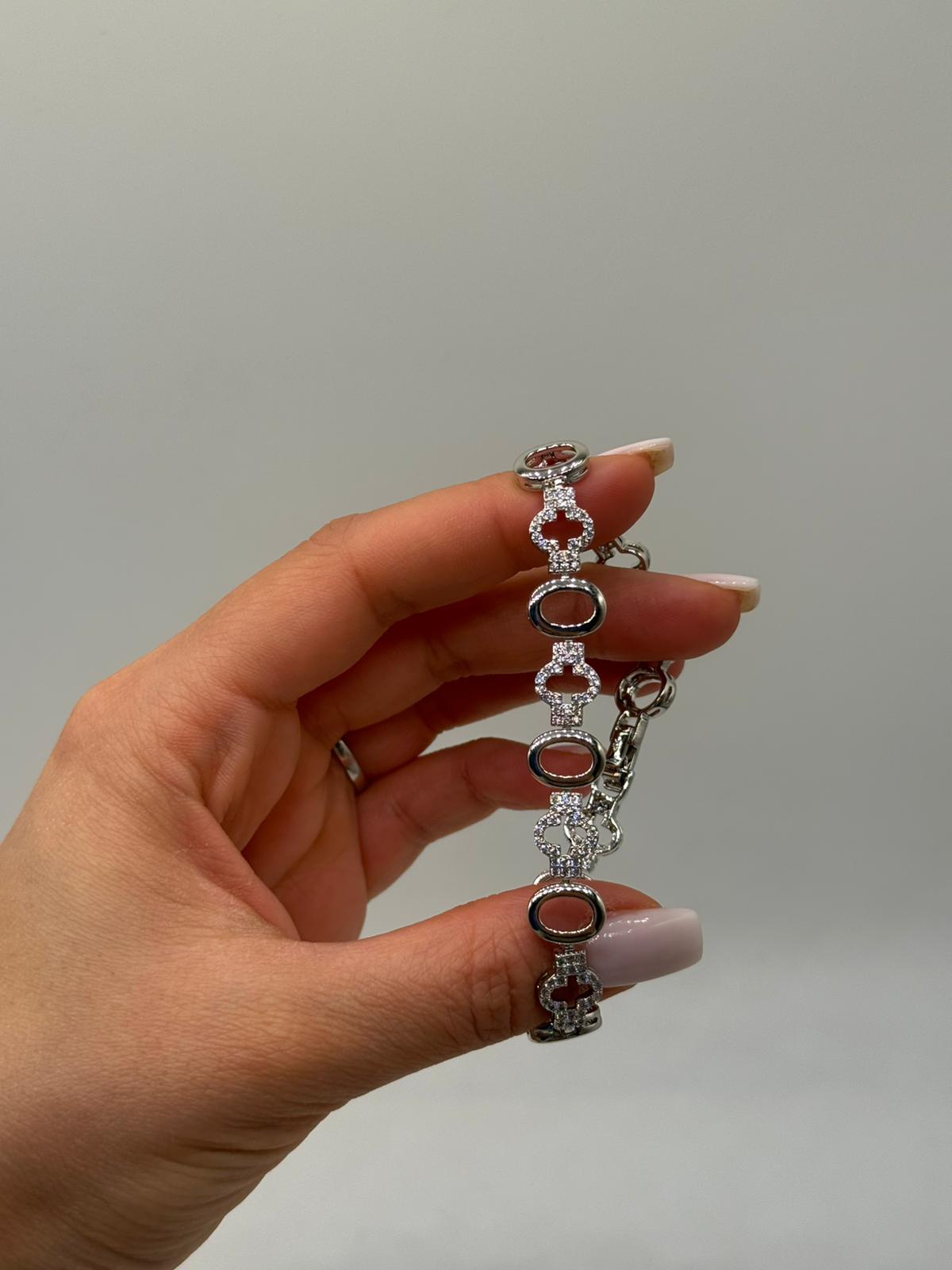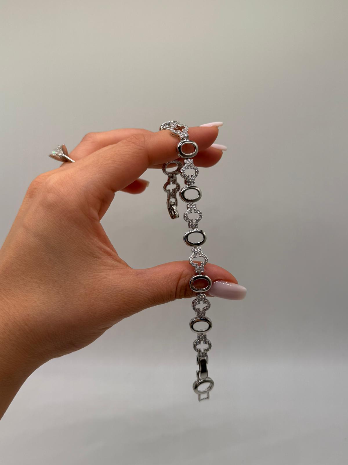 Oval Halkalı & Zirkon Taşlı Xuping VIP Çelik Gümüş Renk Kadın Bileklik