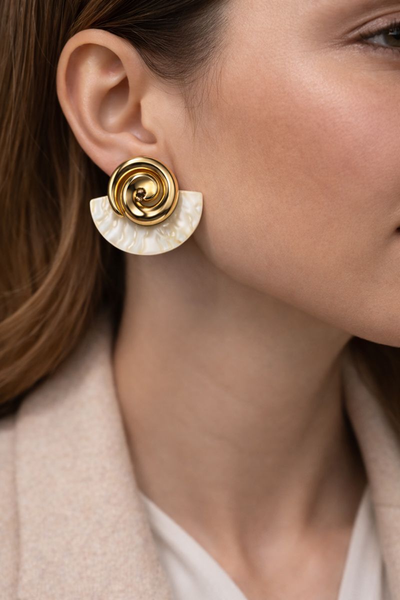 Sedef Yarım Ay Spiral Gold VIP Çelik Küpe, modern sanat esintili formu ile stilinizi güçlü bir şekilde tamamlar. Yarım ay şeklindeki sedef dokulu yüzey, ışıkla birlikte doğal bir parlaklık sunarken; merkezde yer alan spiral gold detay tasarıma sofistike bir vurgu katar.