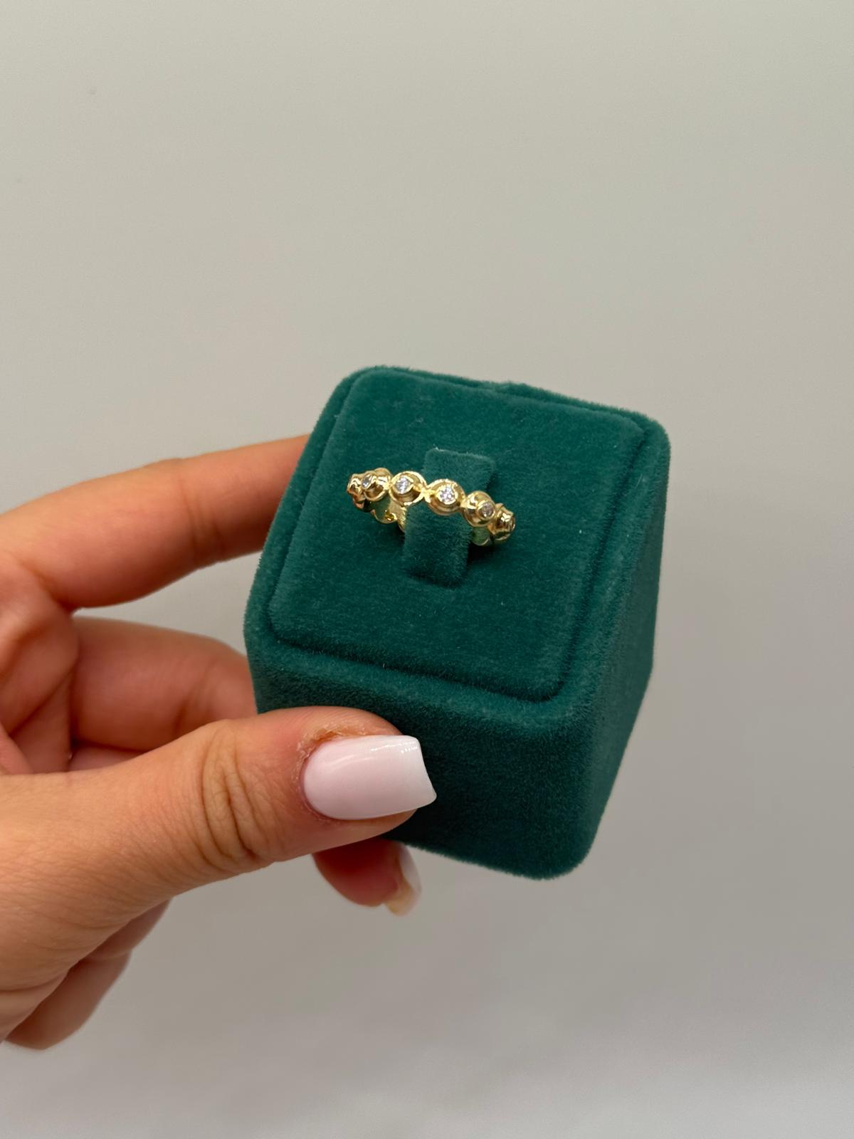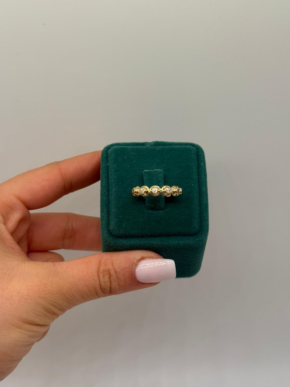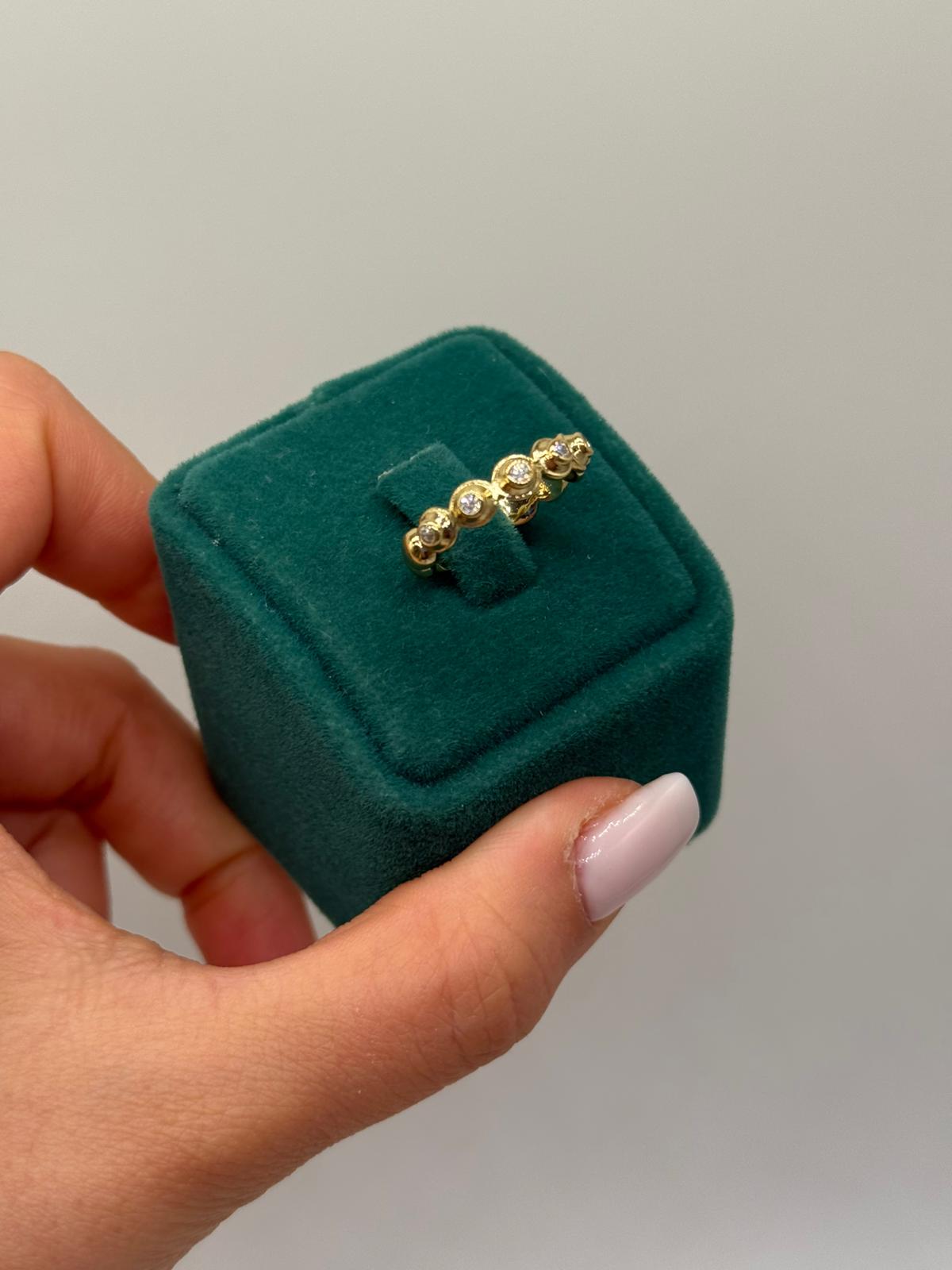 Soft Glow Taşlı Yüzük, yuvarlak formda dizilmiş taşlarıyla sade ama etkileyici bir ışıltı sunar. İnce ve zarif yapısı sayesinde günlük kullanıma uygundur; tek başına şık, diğer yüzüklerle kombinlendiğinde ise modern bir stil oluşturur.