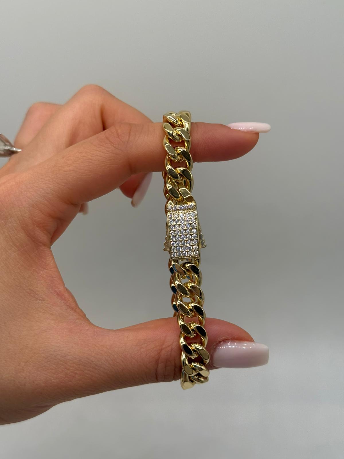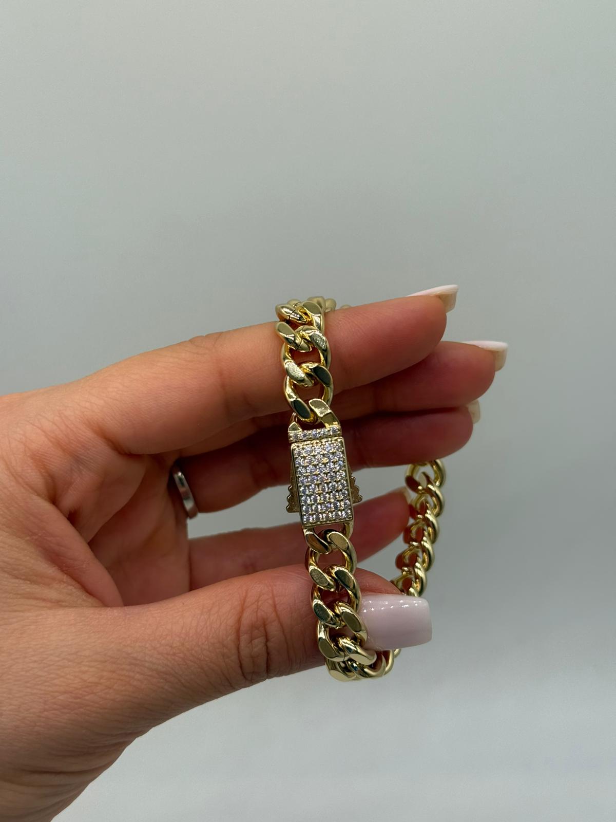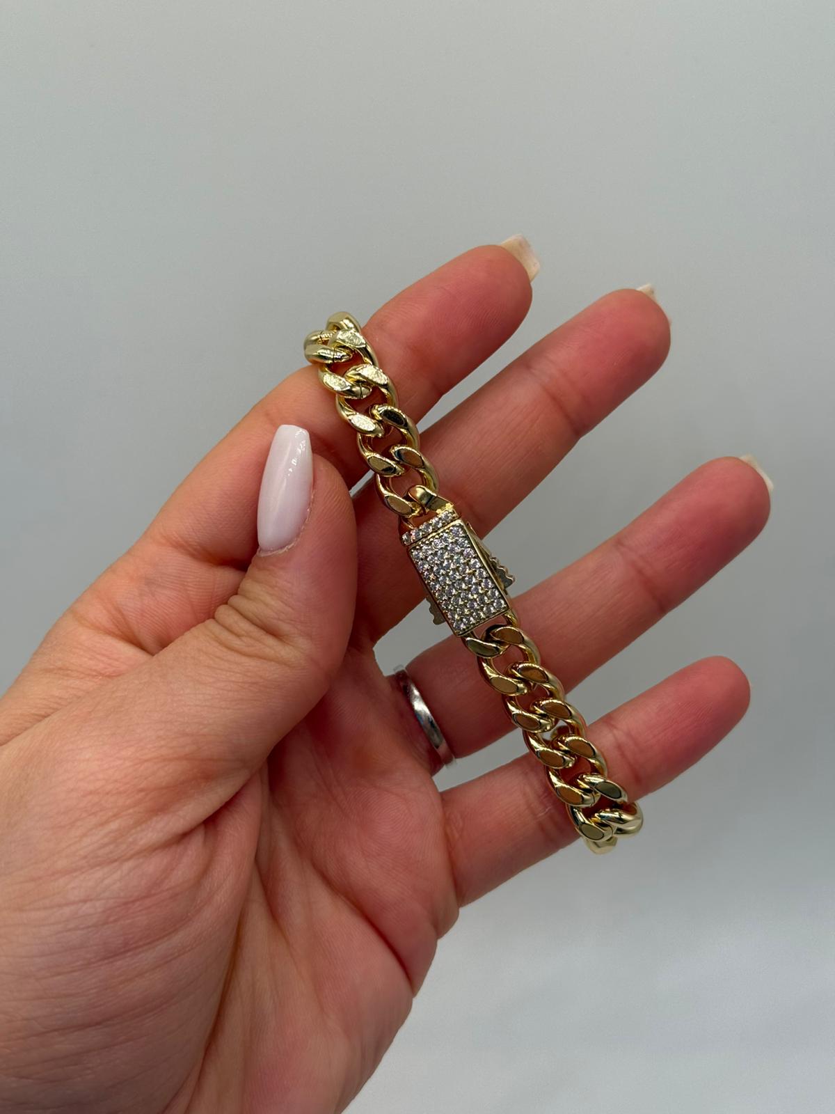 Güçlü ve modern çizgileriyle dikkat çeken bu Xuping VIP çelik kadın bileklik, kalın zincir formunu tamamı taşlarla kaplı kilit detayı ile buluşturur. Orta bölümde yer alan taşlı kilit, bilekliğe lüks ve dikkat çekici bir karakter kazandırır.