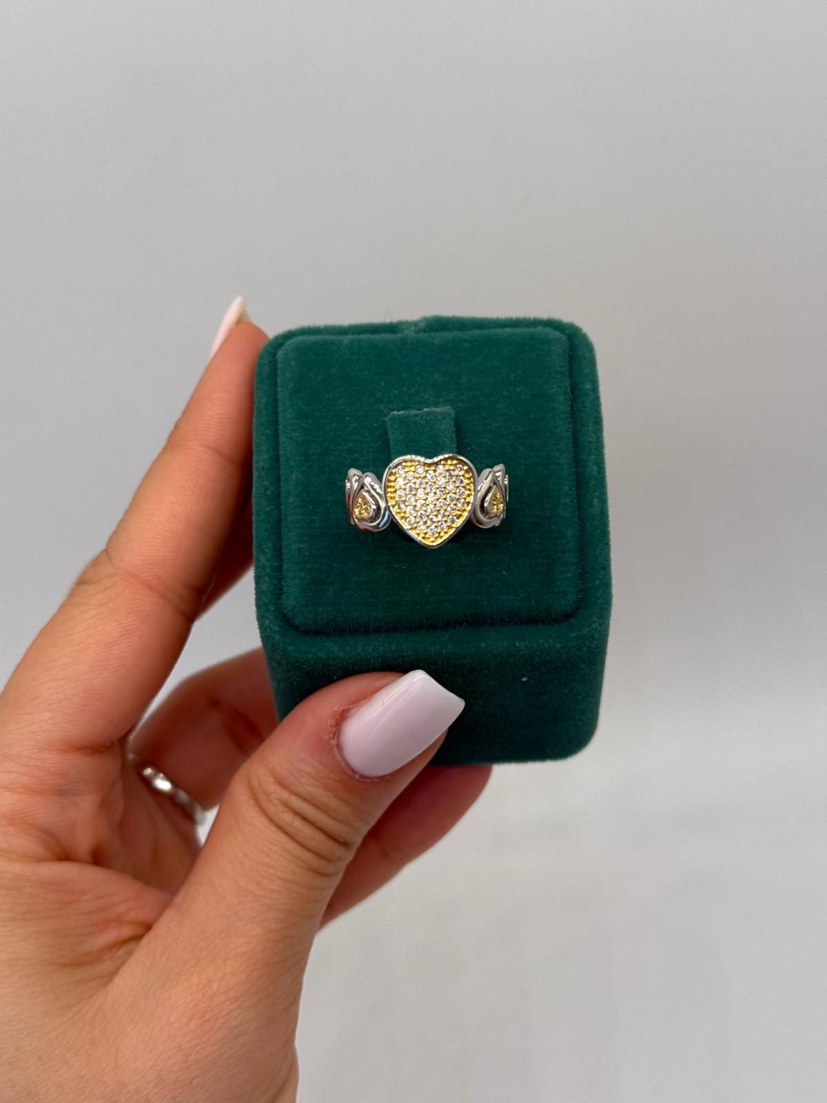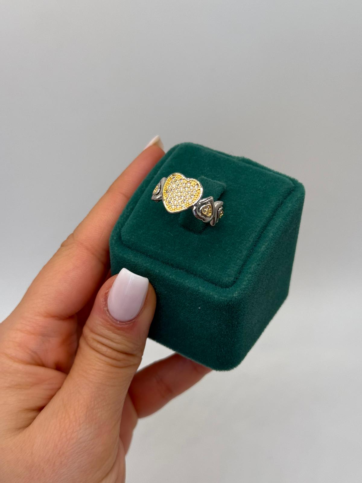 Xuping Altın Kalp Işıltısı yüzük, merkezde yer alan kalp formundaki yoğun taş dizilimiyle romantik ve dikkat çekici bir tasarım sunar. Kalp detayının iki yanında yer alan zarif motifler modele estetik bir denge kazandırırken, altın tonlu taşlar yüzüğe sıcak ve şık bir ışıltı katar. Hem anlam yüklü hem de göz alıcı bir model arayanlar için ideal olan bu yüzük, günlük kombinlerden özel anlara kadar her stile uyum sağlar. Sevgiyi ve zarafeti bir arada yansıtan özel bir Xuping tasarımıdır.