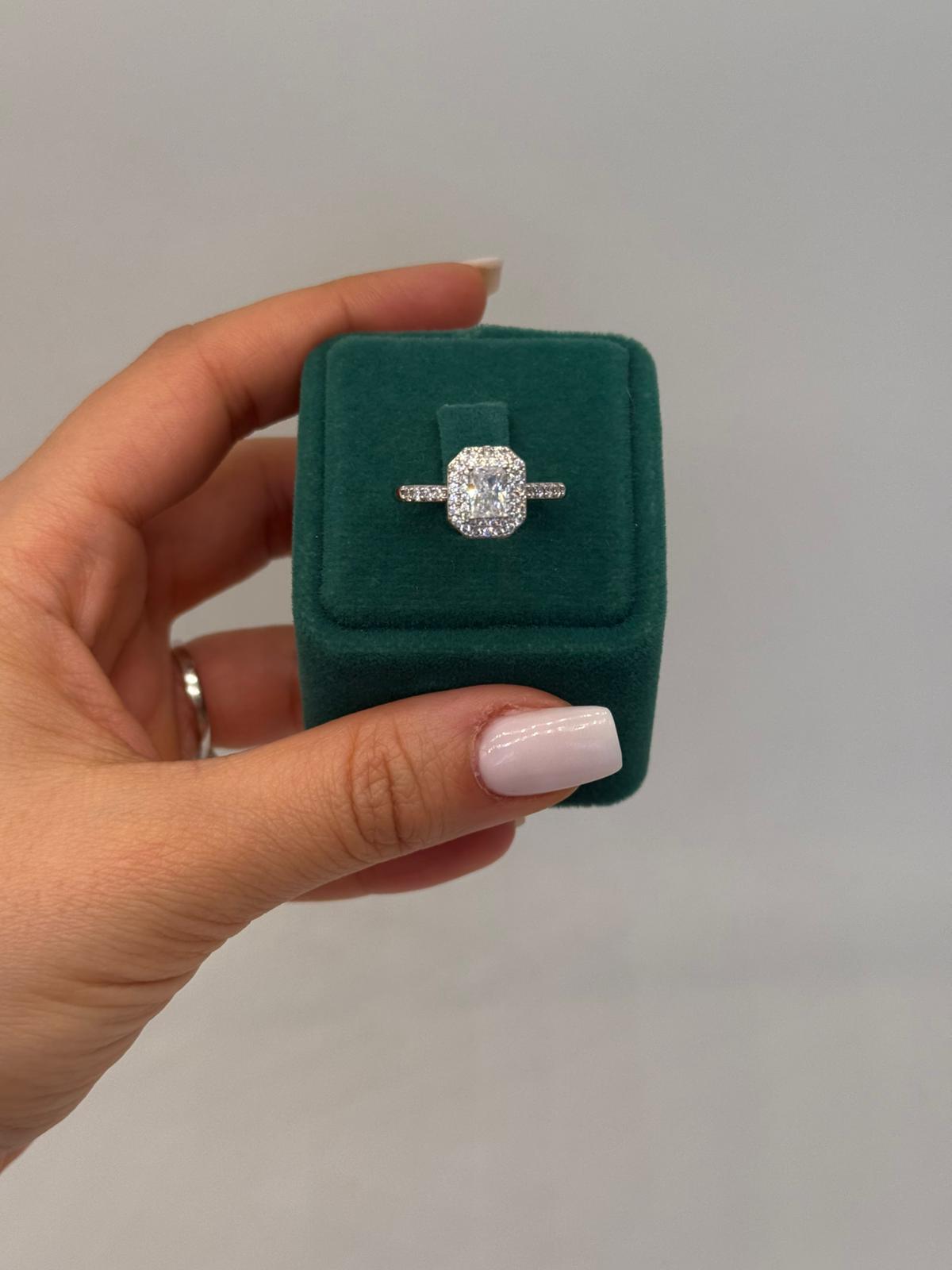 Xuping baget taşlı bu zarif yüzük, merkezde yer alan dikdörtgen (baget) kesim ana taş ve etrafını saran mikro taşlı halo detayıyla göz alıcı bir şıklık sunar. İnce ve taşlı yüzük bandı, tasarıma ekstra ışıltı katarak parmağınızda asil bir duruş sağlar. Klasik ve modern çizgileri bir araya getiren bu model; günlük kullanımda sade bir şıklık, özel günlerde ise etkileyici bir tamamlayıcı olarak öne çıkar. Zamansız tasarımı sayesinde hediye için de mükemmel bir tercihtir.