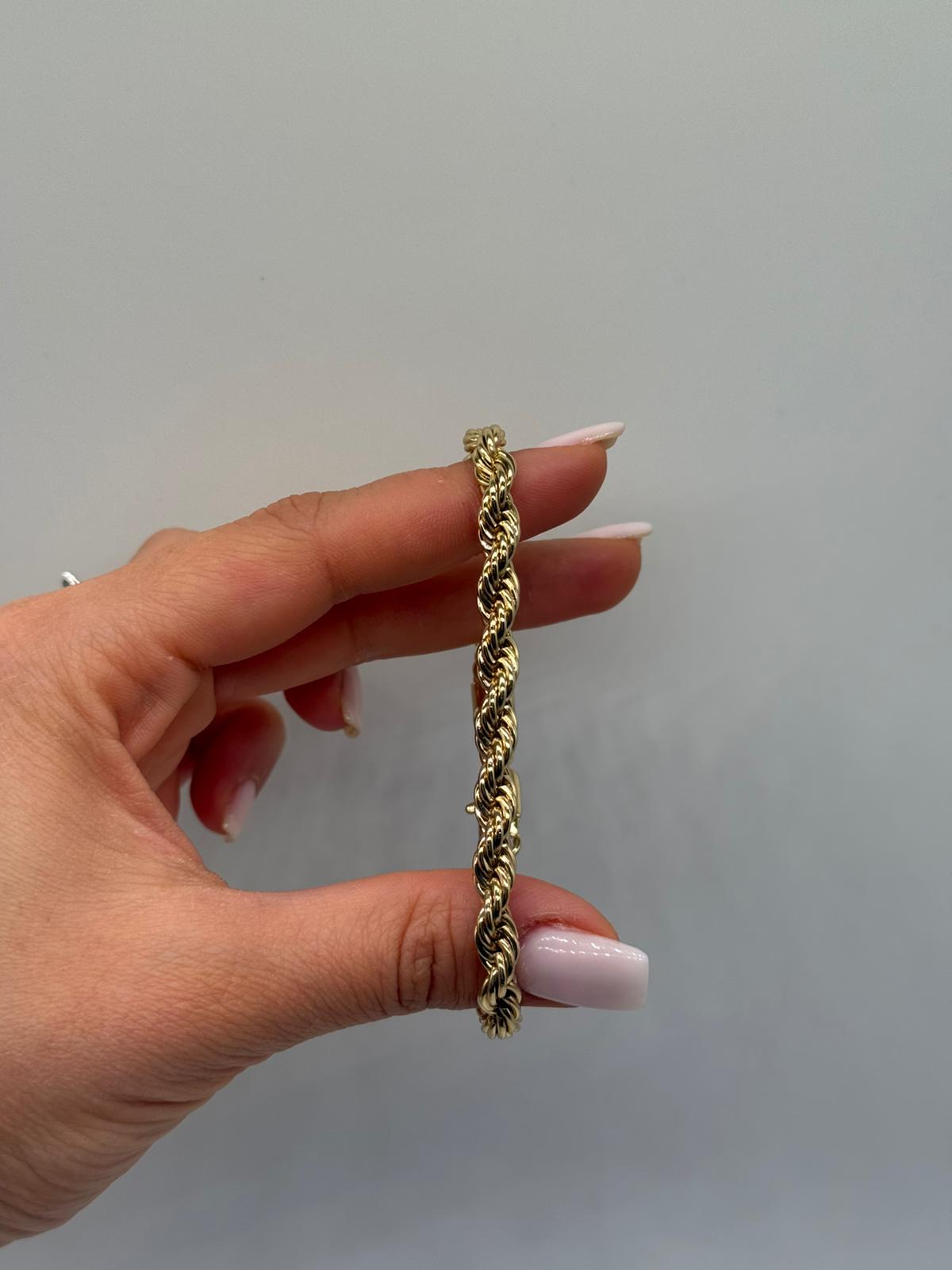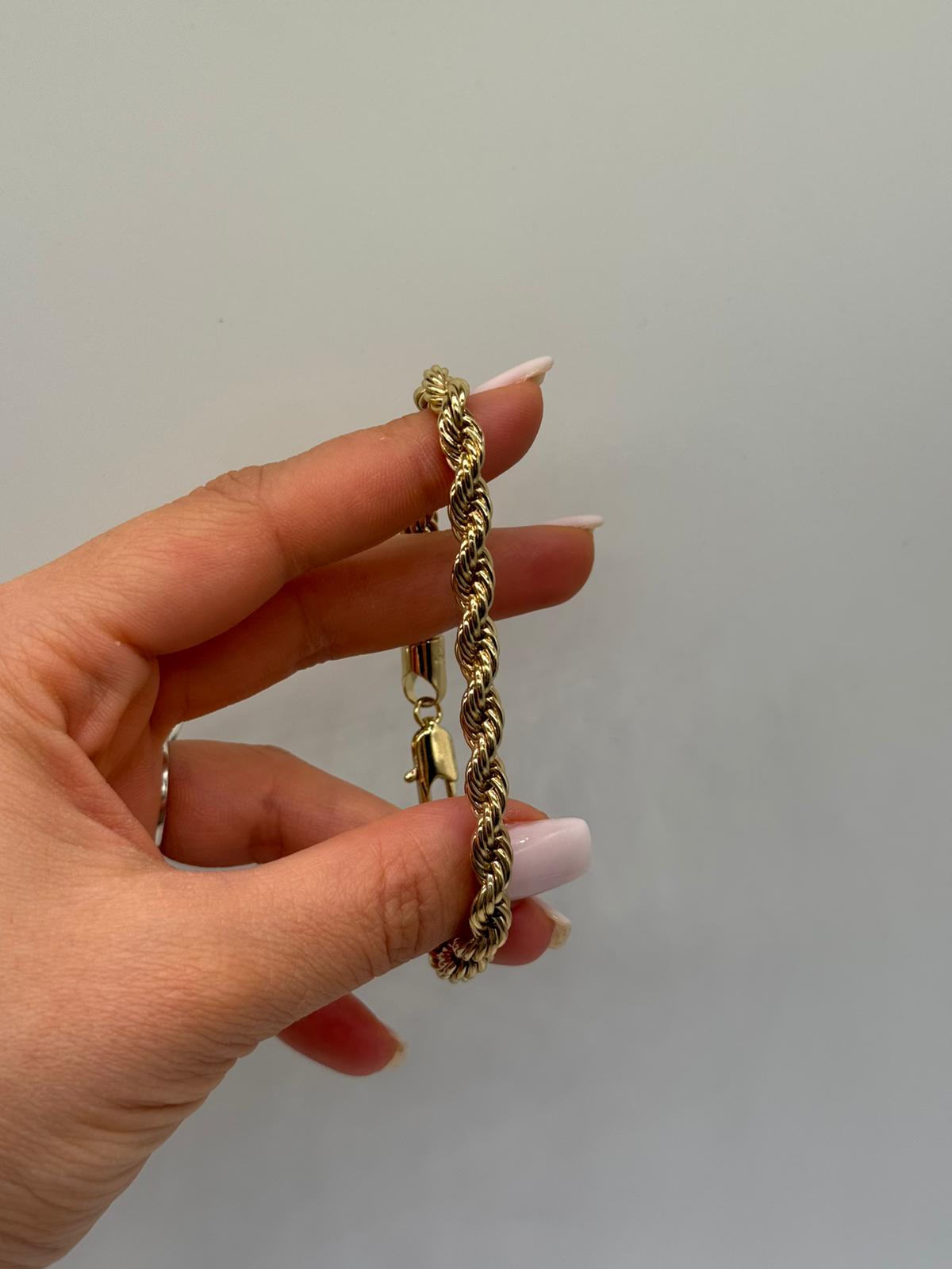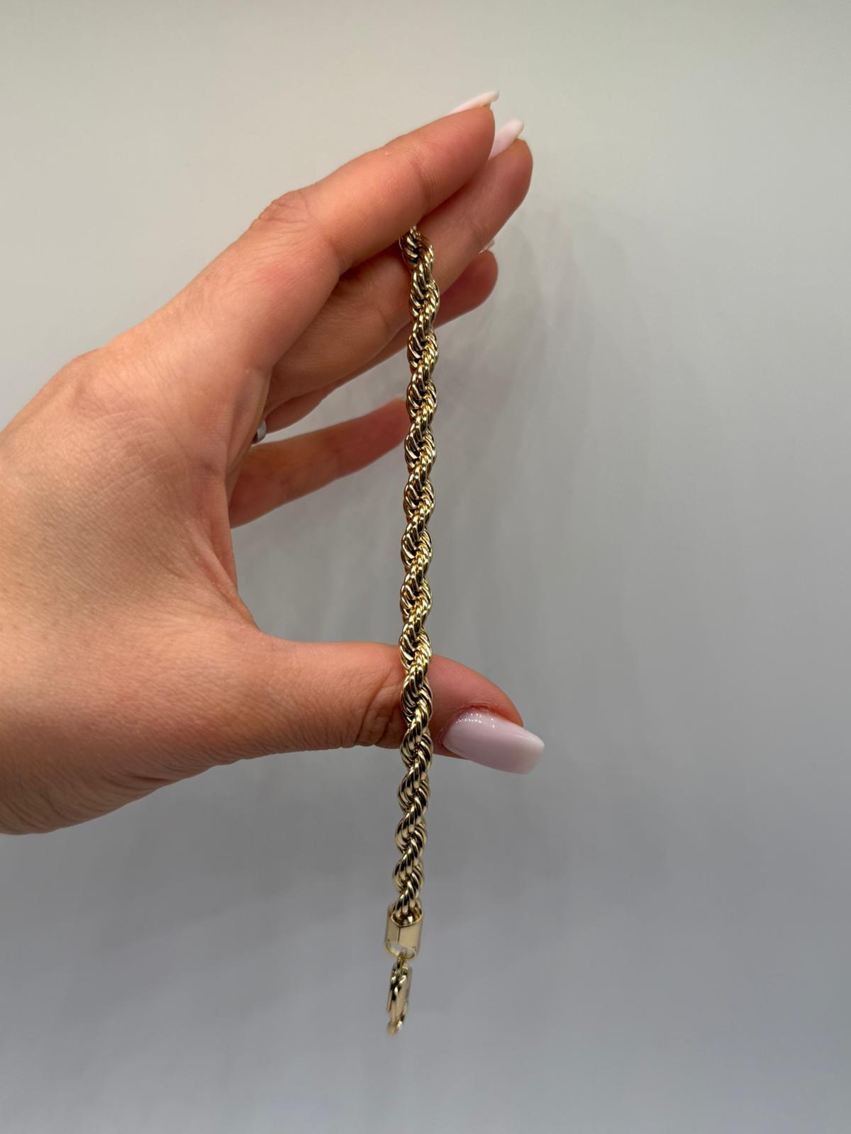 Klasik burgu zincir tasarımıyla öne çıkan bu bileklik, sade şıklığı sevenler için vazgeçilmez bir modeldir. Minimal yapısı sayesinde tek başına kullanılabileceği gibi farklı bilekliklerle kombinlenmeye de uygundur.