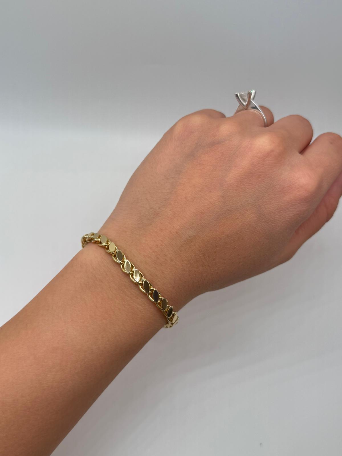 Klasik figaro zincir formuyla tasarlanan Xuping gold bileklik, sade ve zamansız şıklığıyla her stile kolayca uyum sağlar.