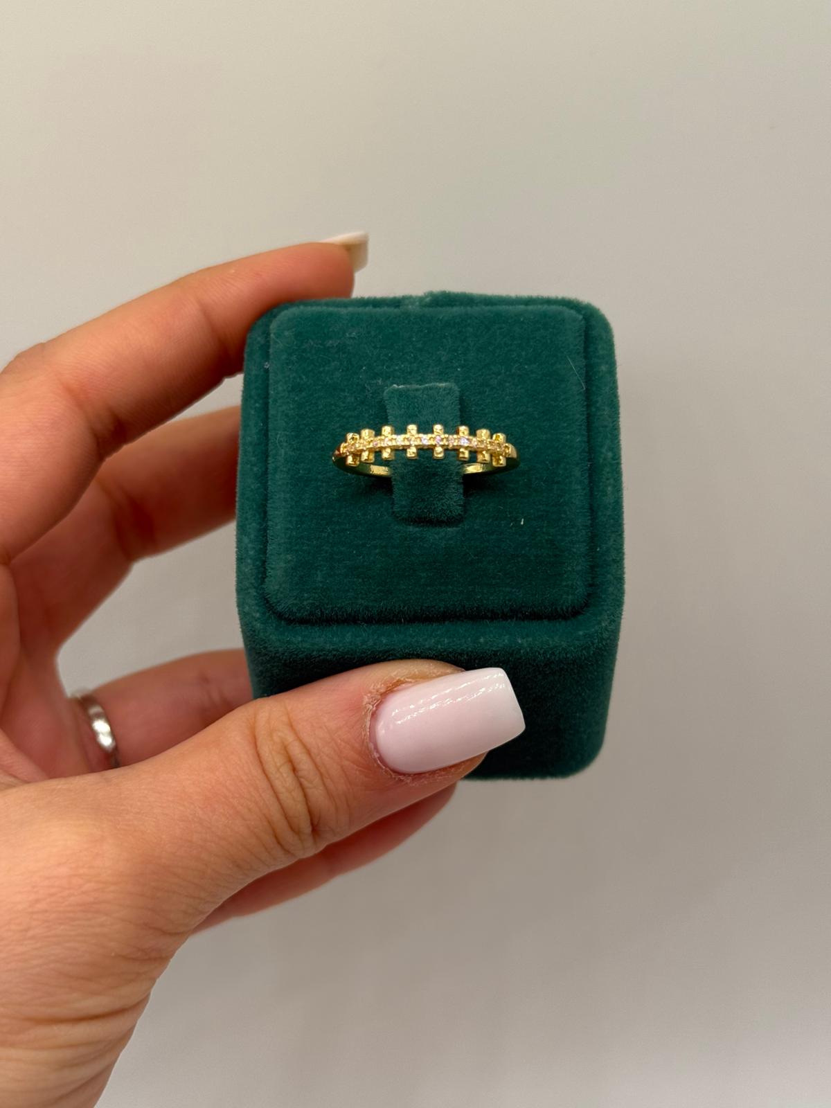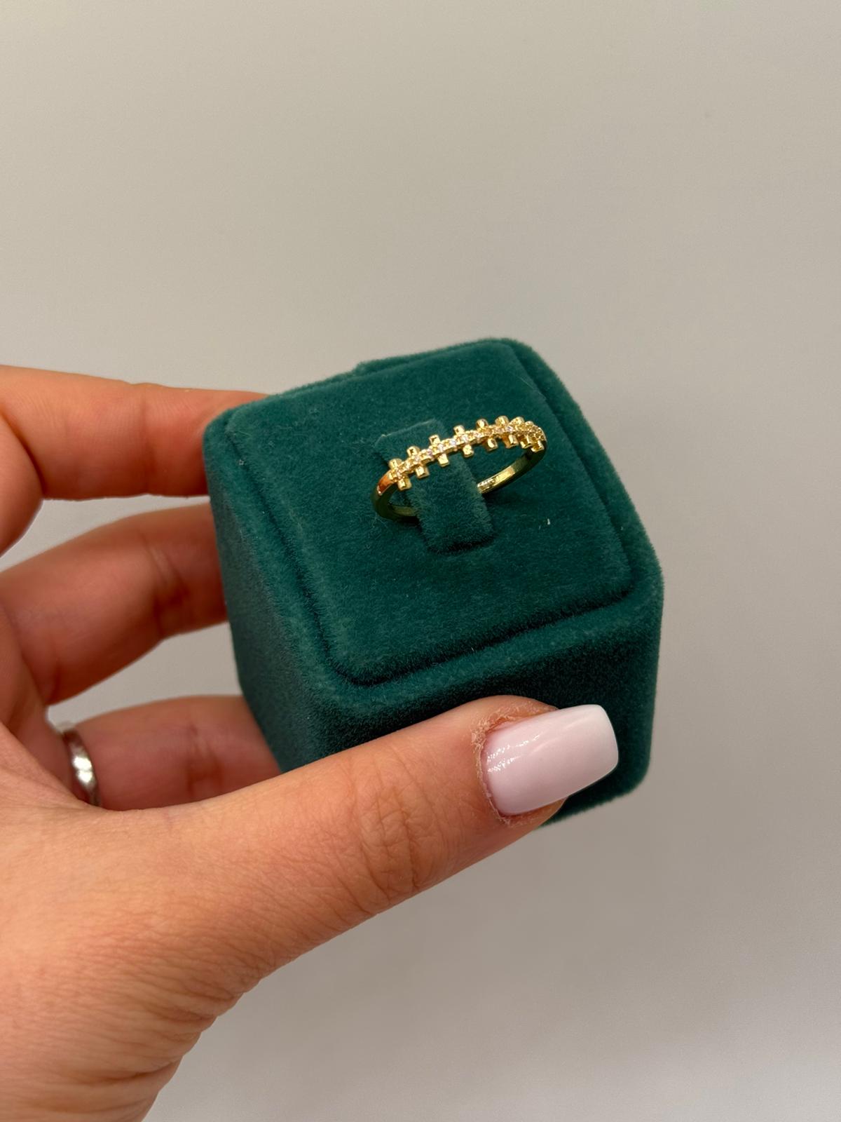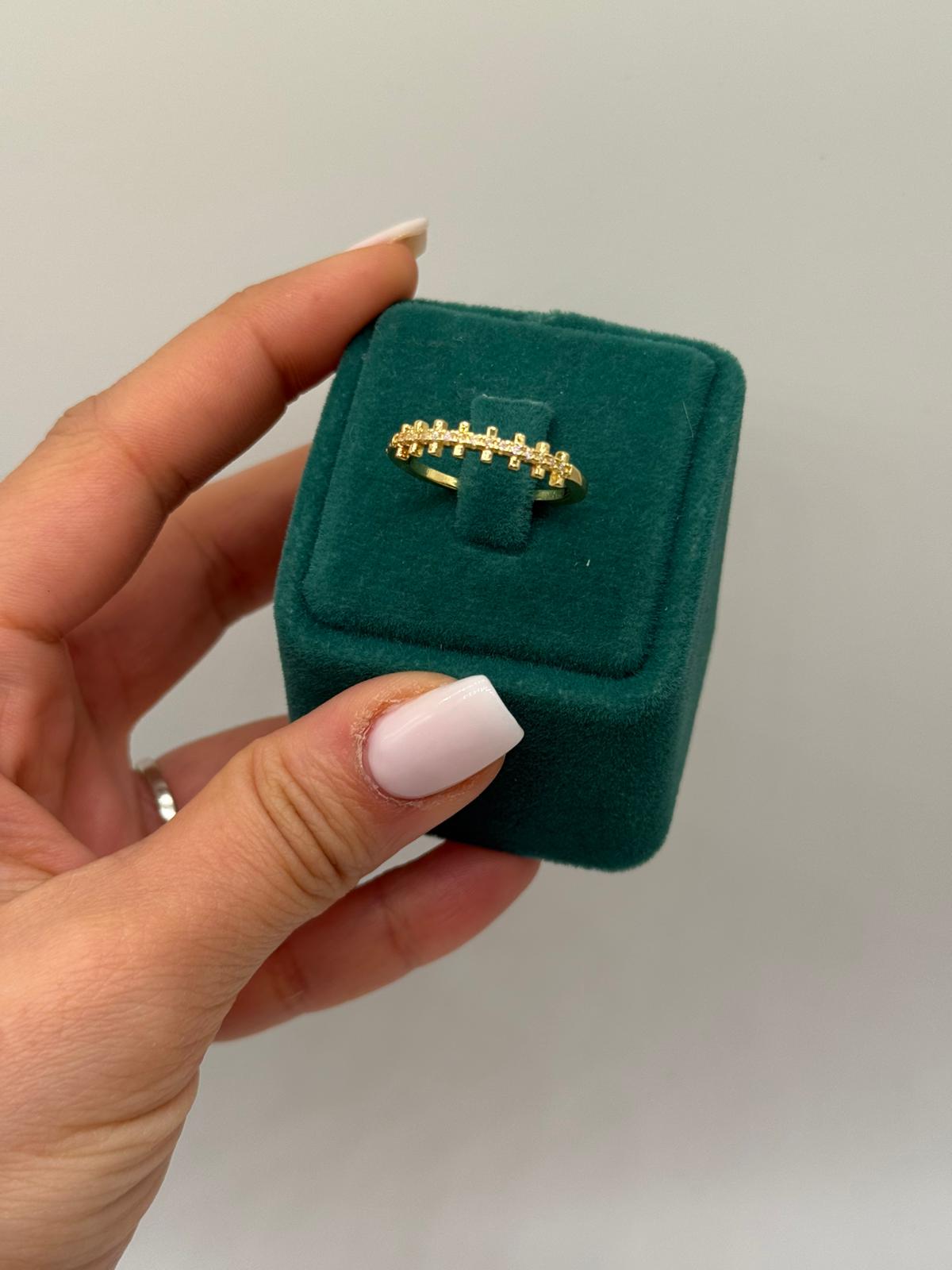 Xuping koleksiyonuna ait bu ince taşlı yüzük, zarif ve modern tasarımıyla günlük kullanıma uygundur. Altın renk kaplaması ve düzenli taş detayları sayesinde sade ama şık bir görünüm sunar.