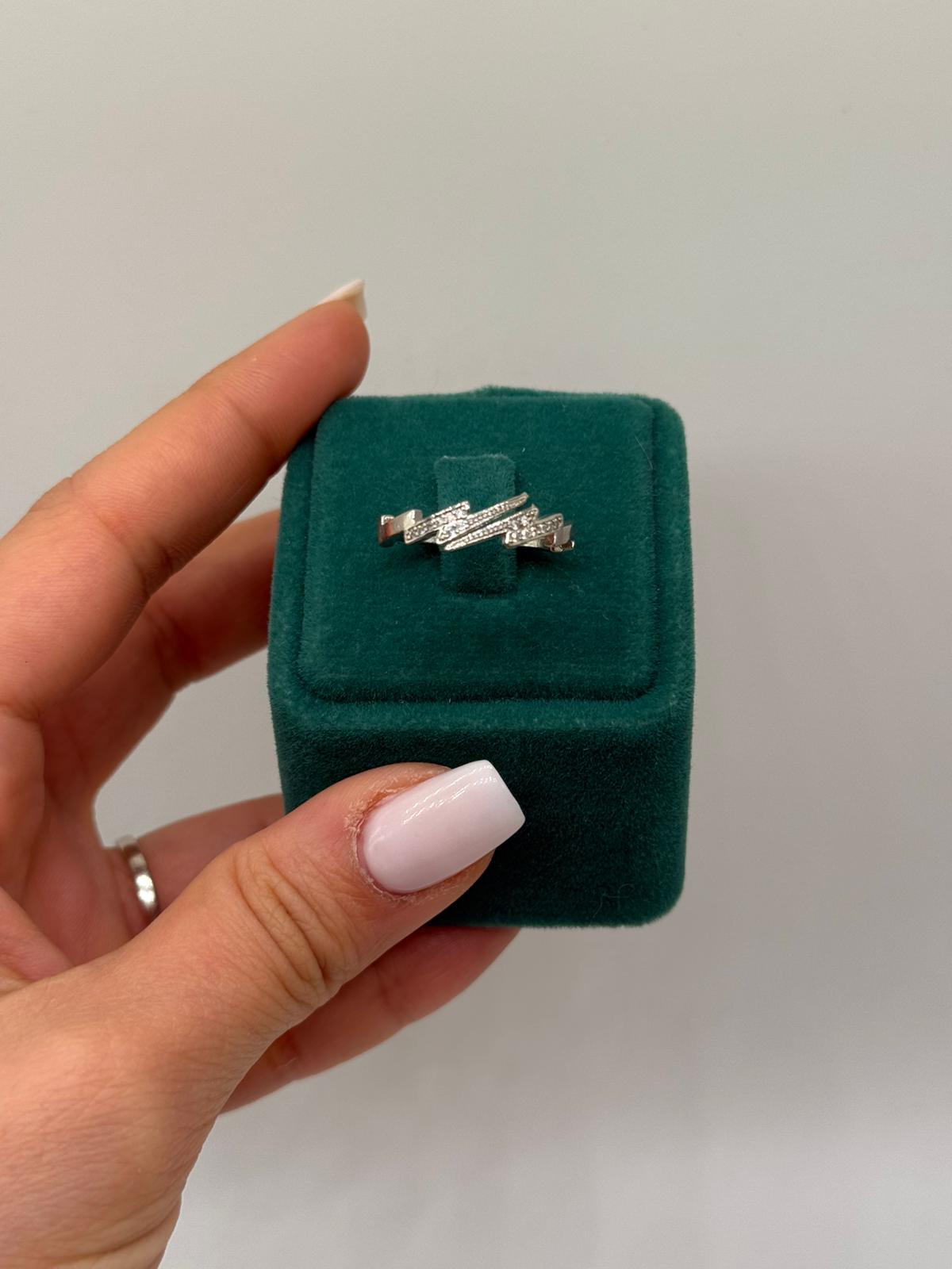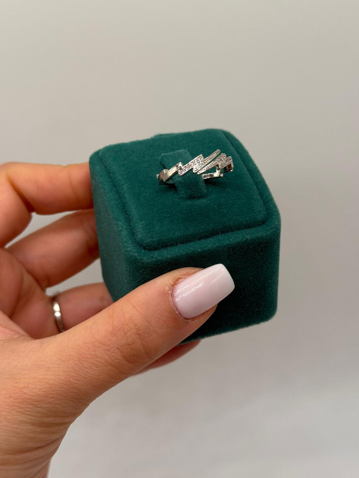 Xuping koleksiyonuna ait bu gümüş renk taşlı yüzük, zigzag formundaki modern tasarımıyla dinamik ve şık bir görünüm sunar. Geometrik çizgileri ve ışıltılı taş detayları sayesinde stilinize güçlü ama zarif bir dokunuş katar.