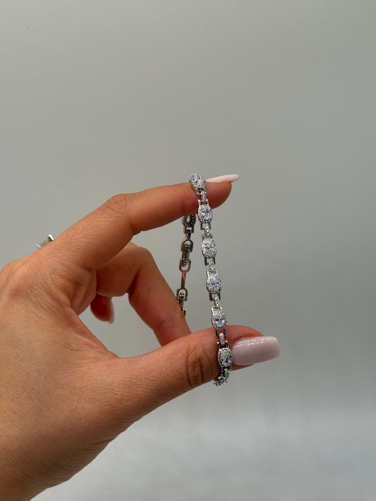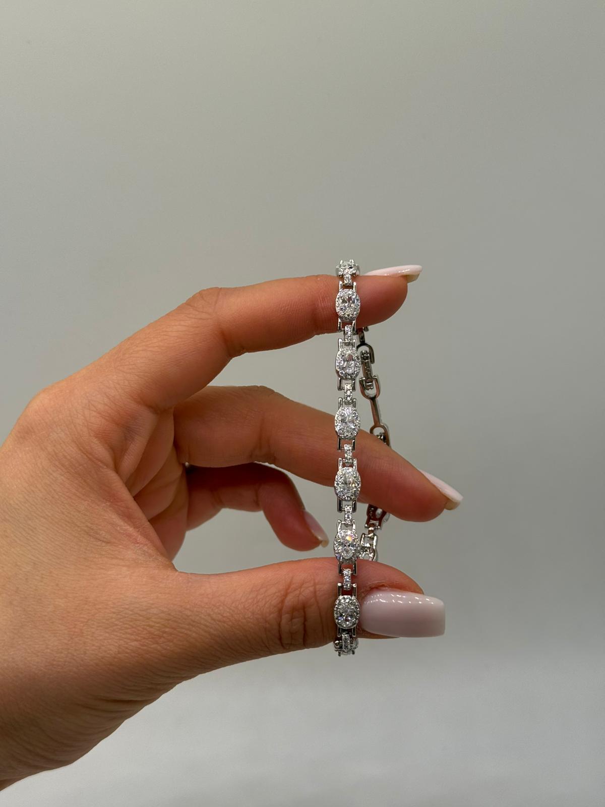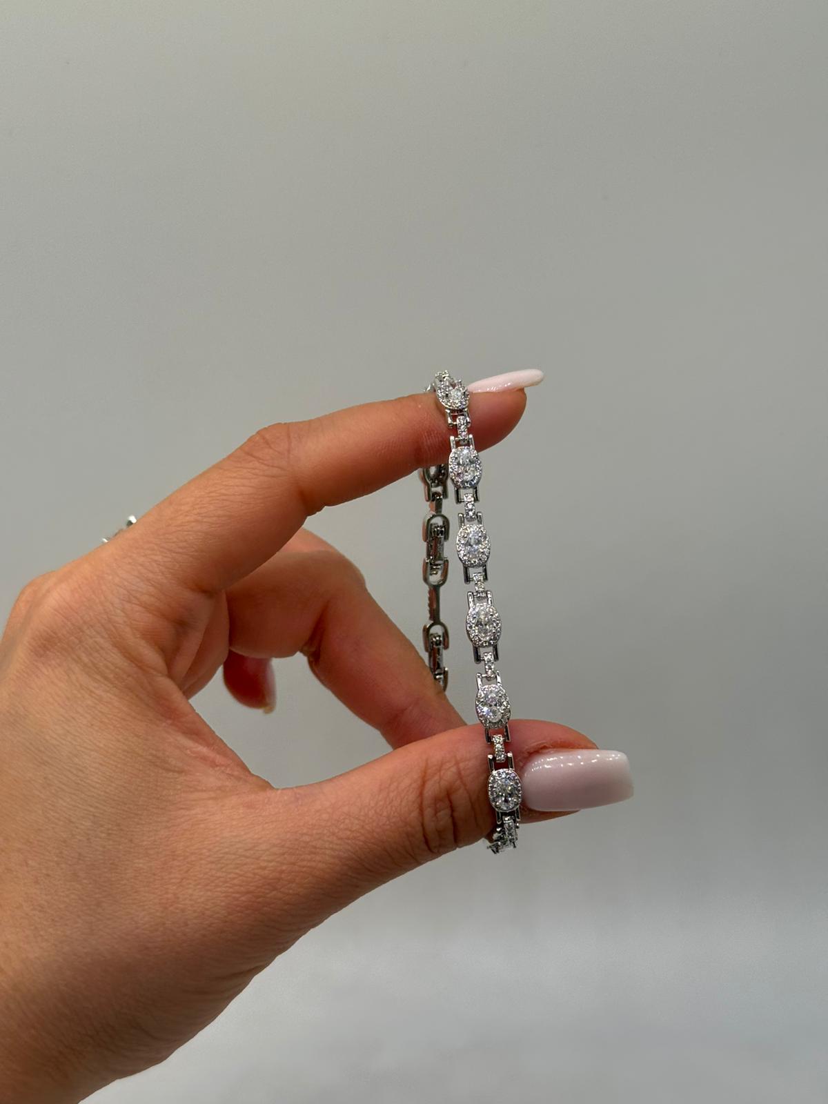 Klasik oval kesim zirkon taşların ince bağlantılarla bir araya geldiği bu VIP çelik bileklik, zamansız şıklığı modern bir dokunuşla sunar. Taşların dengeli dizilimi bilekte zarif, net ve feminen bir duruş oluşturur.