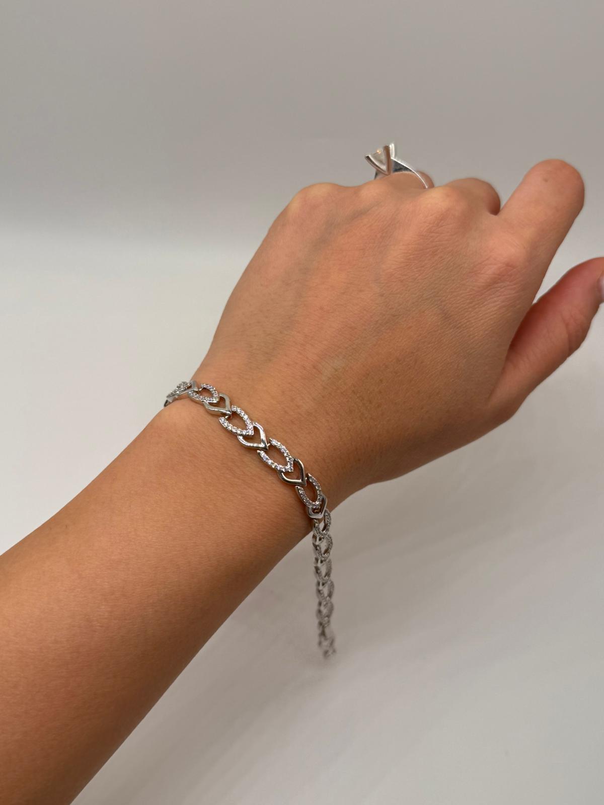 Modern zincir formu, zirkon taş süslemeli ara halkalar ile hareketlendirilmiş bu bileklik; sade ama güçlü bir şıklık sunar.