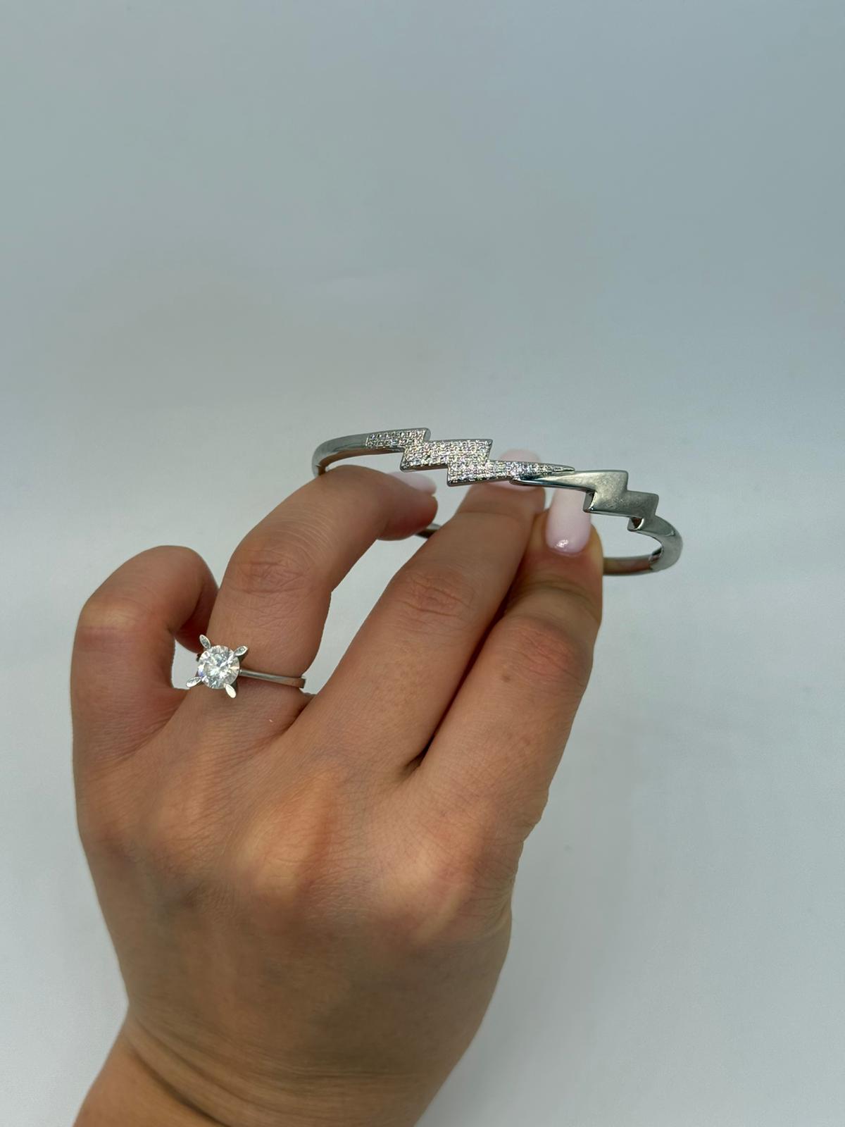 Xuping şimşek motifli bu modern kelepçe bileklik, güçlü ve iddialı tasarımıyla dikkat çeker. Orta bölümde yer alan taşlarla süslenmiş şimşek formu, enerjiyi ve dinamizmi simgelerken bileğe modern bir ışıltı katar. Gümüş tonlu kaplaması sayesinde sade ama etkileyici bir görünüm sunar. Kelepçe yapısı ile kolay kullanım sağlar ve bilekte şık bir duruş sergiler. Günlük kombinlerde stilinizi öne çıkarmak ya da spor-şık tarzı tamamlamak için ideal bir aksesuardır.