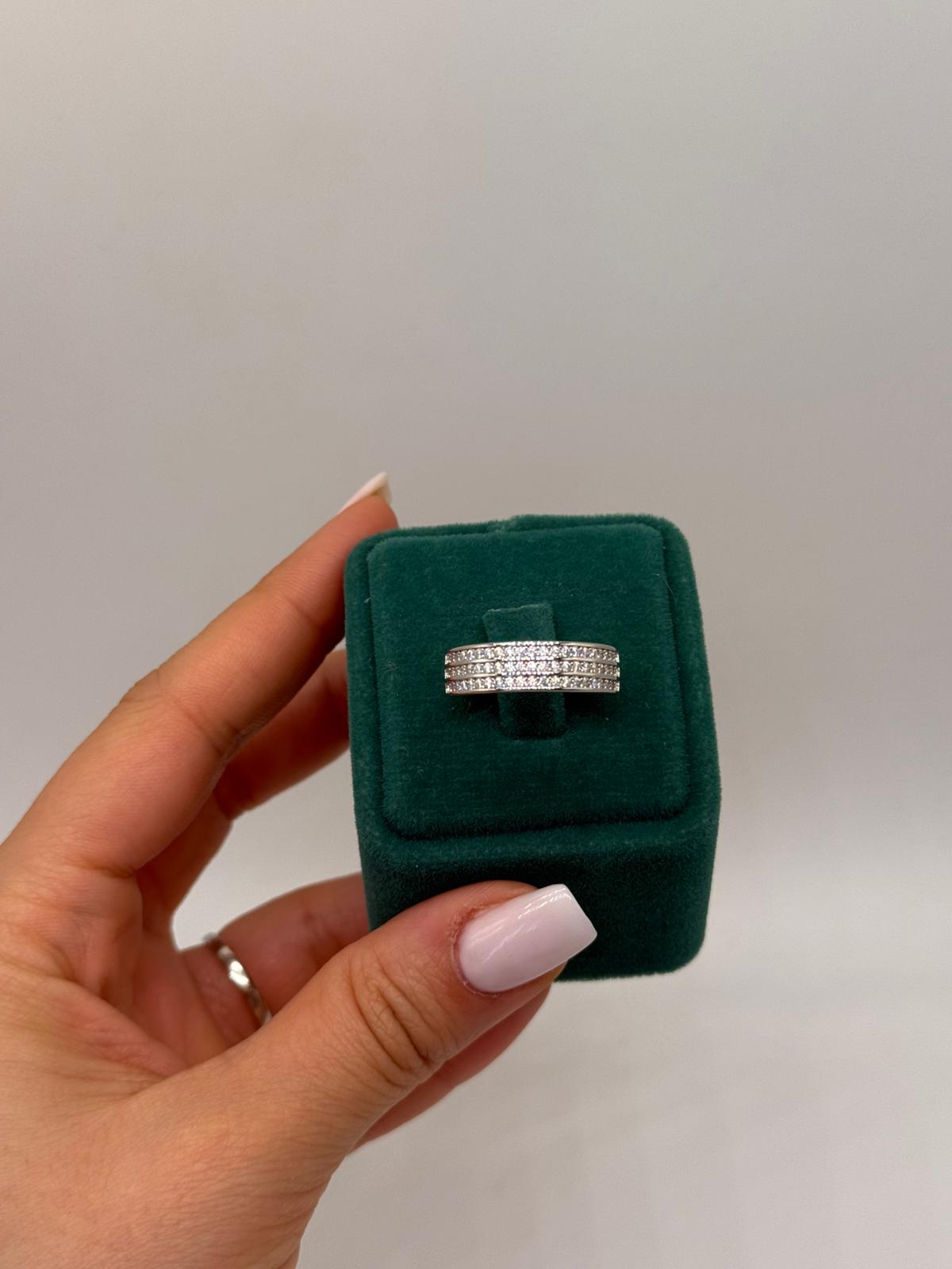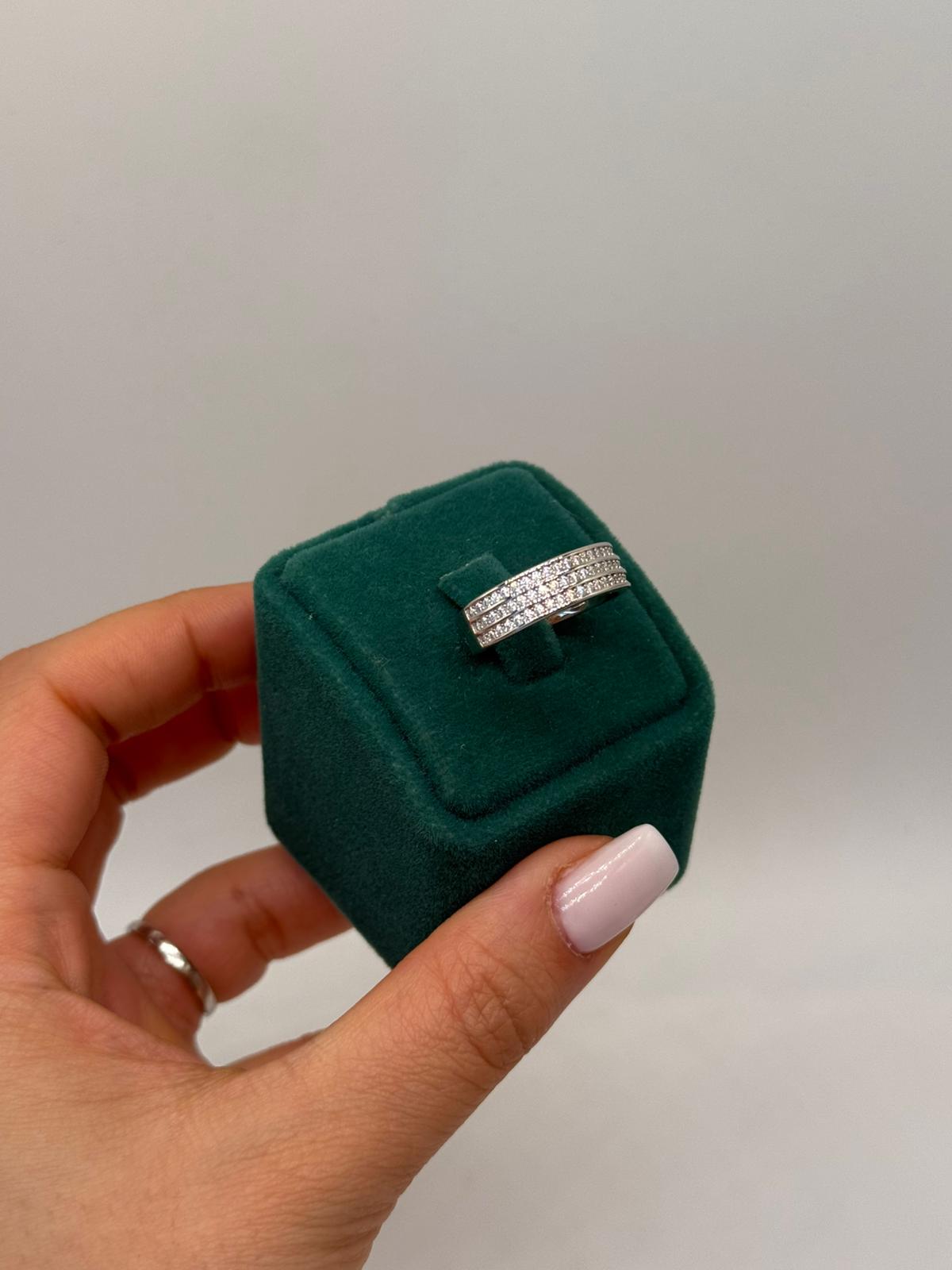 Xuping Üç Sıra Taşlı Şerit Yüzük, modern ve güçlü duruşuyla öne çıkan şık bir tasarıma sahiptir. Üç sıra halinde dizilmiş ışıltılı taşları sayesinde parmakta dolgun ve dikkat çekici bir görünüm sunar. Düz ve simetrik formu, yüzüğe hem klasik hem de modern bir hava katar. Günlük kombinlerde zarif bir tamamlayıcı olarak kullanılabileceği gibi, özel davetlerde de şıklığınızı ön plana çıkarır. Zamansız tasarımı sayesinde her yaş ve stile kolayca uyum sağlar.