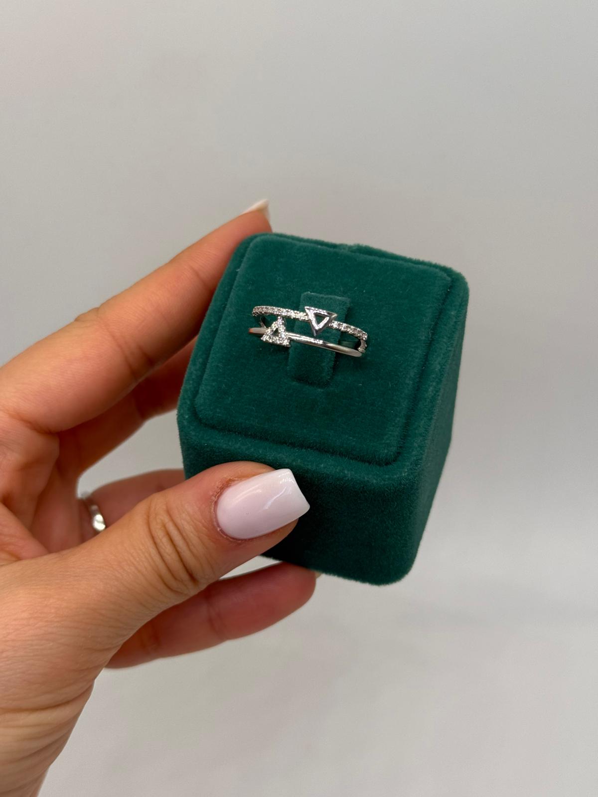 Xuping Üçgen Detaylı Çift Bant Taşlı Yüzük, modern geometrik tasarımı ve zarif taş süslemeleriyle dikkat çeken şık bir modeldir. Çift bantlı yapısı yüzüğe özgün ve dinamik bir görünüm kazandırırken, biri taşlı biri sade olmak üzere iki farklı üçgen detay tasarımı güçlü bir stil vurgusu oluşturur. Minimal ama iddialı duruşu sayesinde hem günlük kombinlerde hem de özel davetlerde rahatlıkla kullanılabilir. Geometrik formu seven ve stiline modern bir dokunuş katmak isteyenler için ideal bir tercihtir.