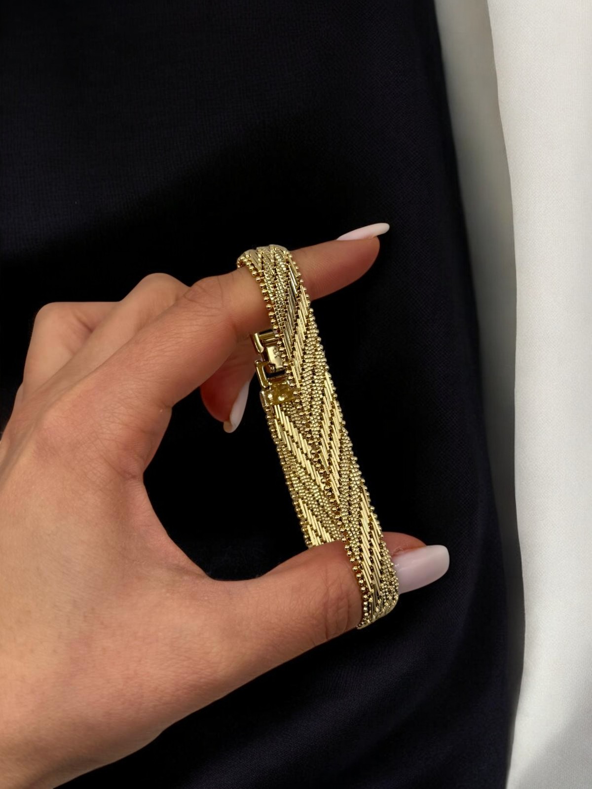 Minimal kombinlerden şık akşam stillerine kadar geniş bir kullanım alanına sahiptir. Tek başına güçlü bir parça olduğu gibi saat veya diğer bilekliklerle de rahatça kombinlenebilir.