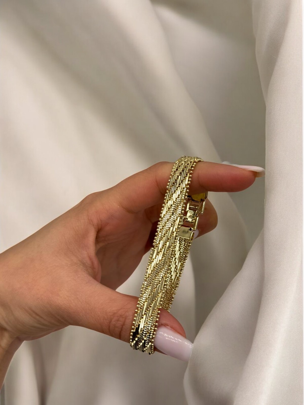 VIP Çelik Çok Sıralı Mikro Zincir Bileklik, ince detayların bir araya geldiği sofistike bir tasarıma sahiptir. Birden fazla mikro zincirin yan yana gelmesiyle oluşan dokulu yapı, bilekte hem dolgun hem de zarif bir görünüm yaratır.