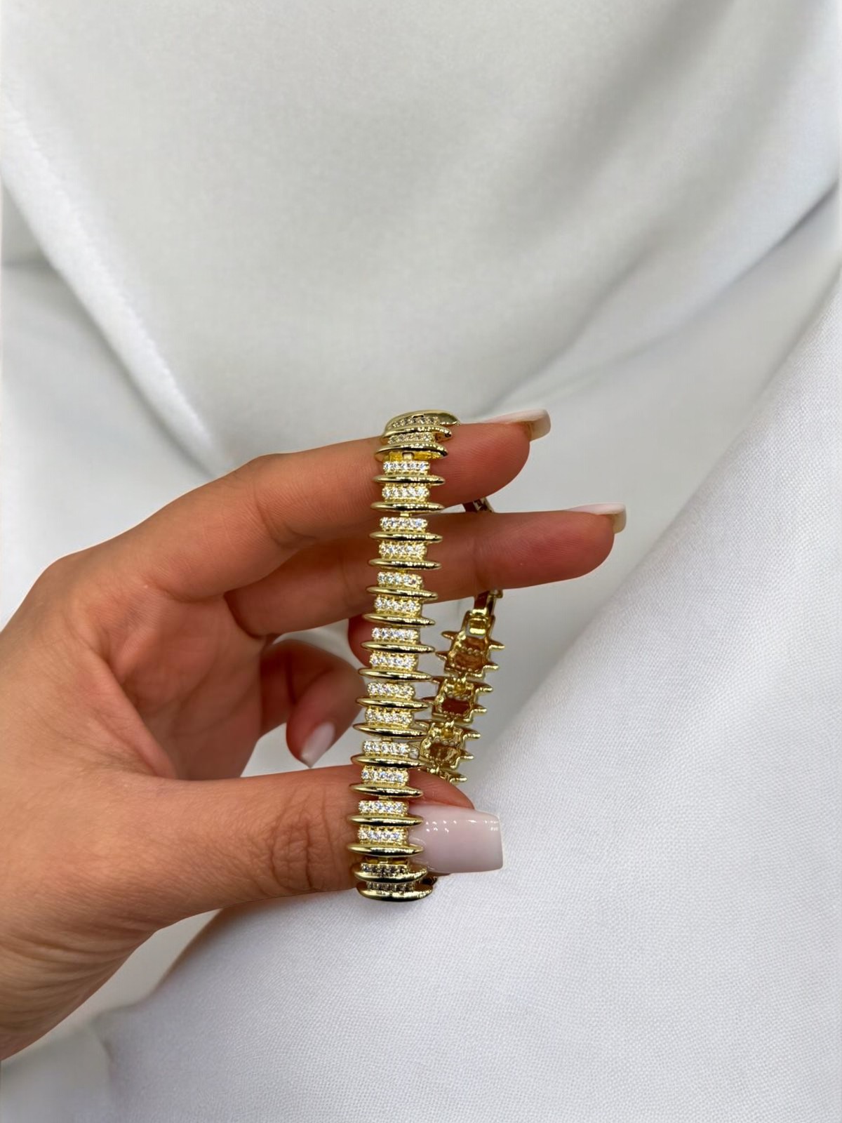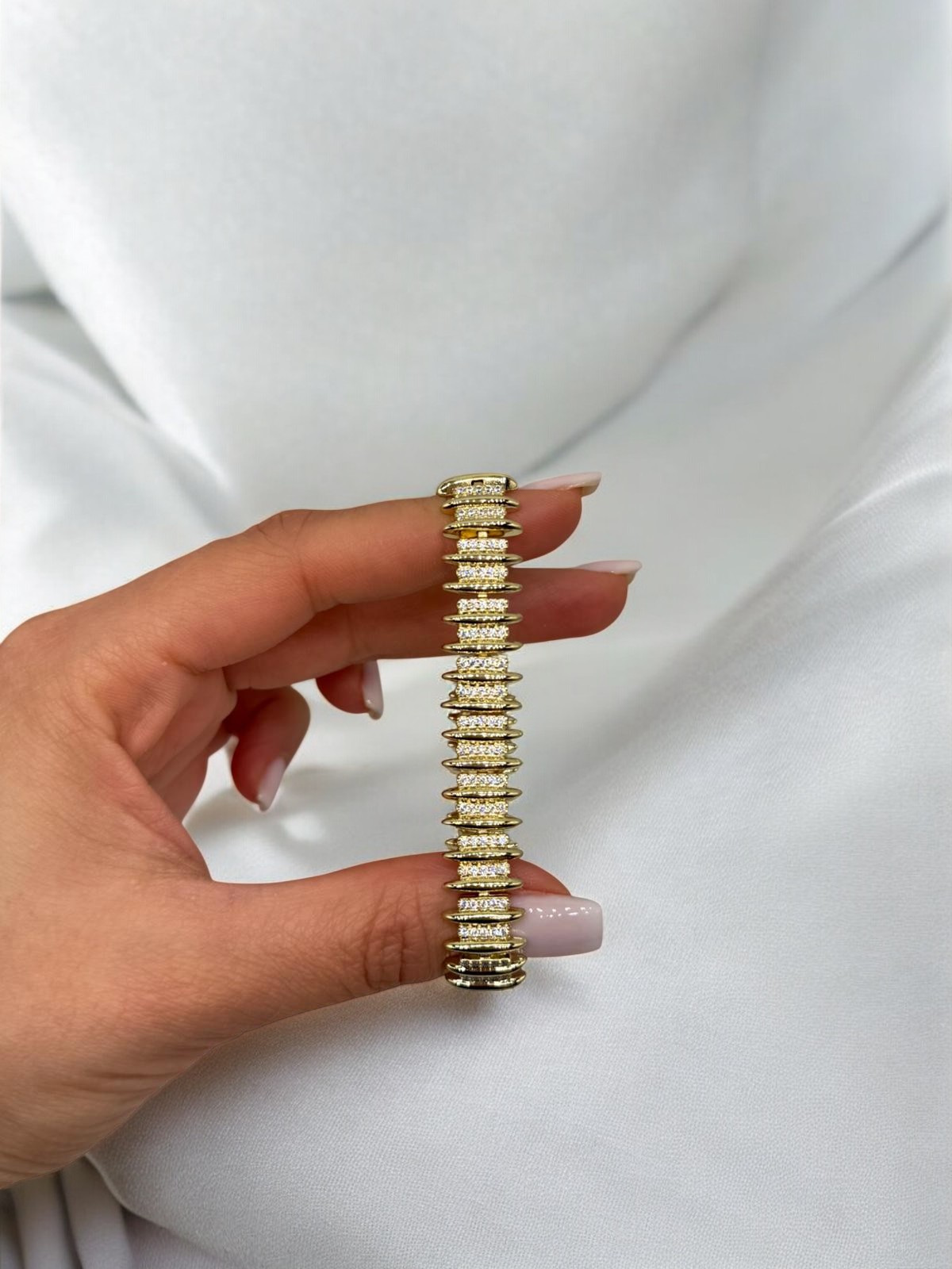 VIP Çelik Sıralı Zirkon Taşlı Bileklik, düzenli ve katmanlı tasarımıyla bilekte dikkat çekici bir duruş sergiler. Her bir halka arasına yerleştirilen zirkon taşlar, bilekliğe yoğun bir ışıltı kazandırırken modern ve güçlü bir stil oluşturur.