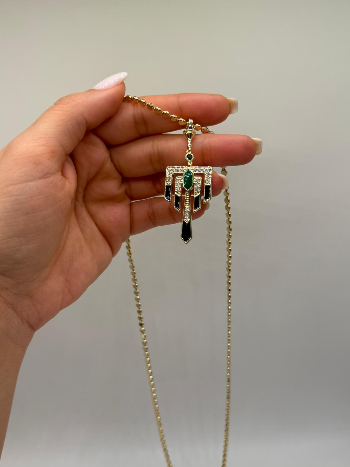 Detay: Siyah & yeşil taşlı, zirkon süsleme