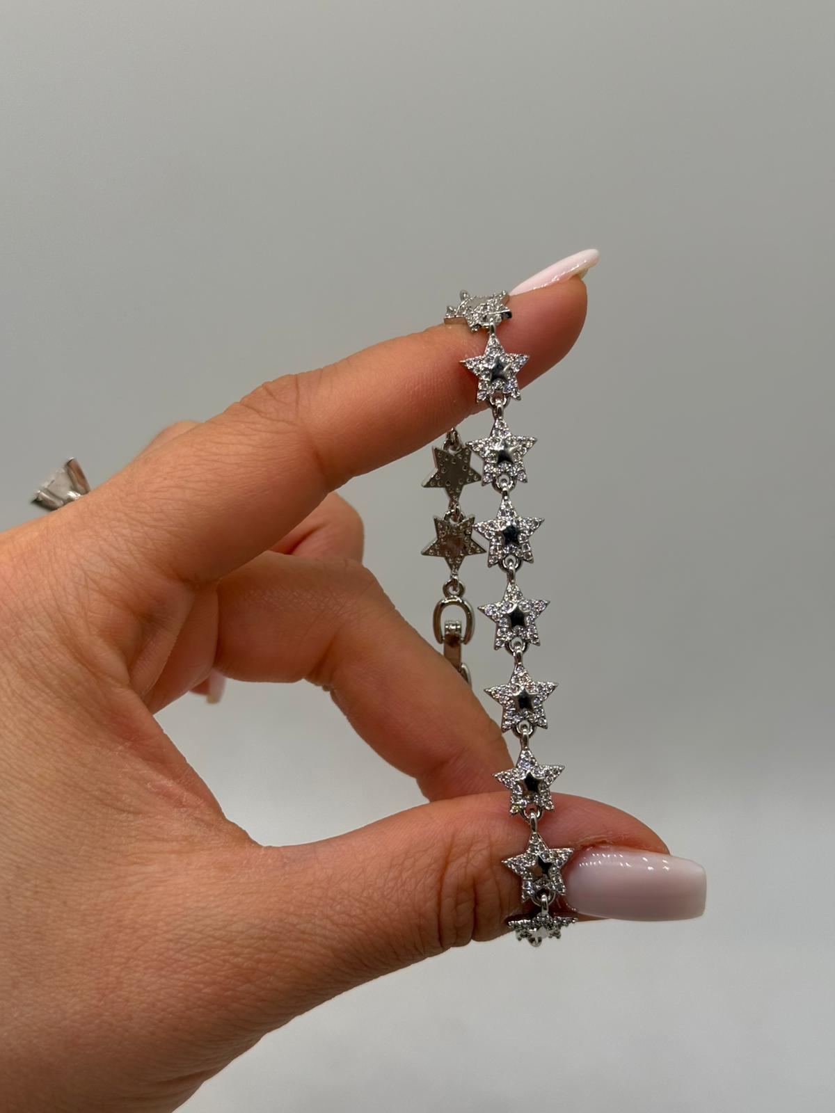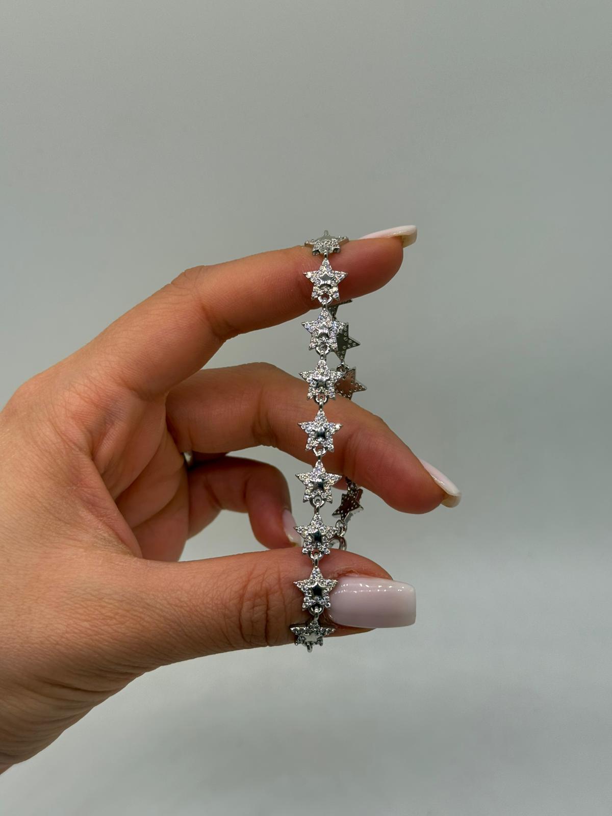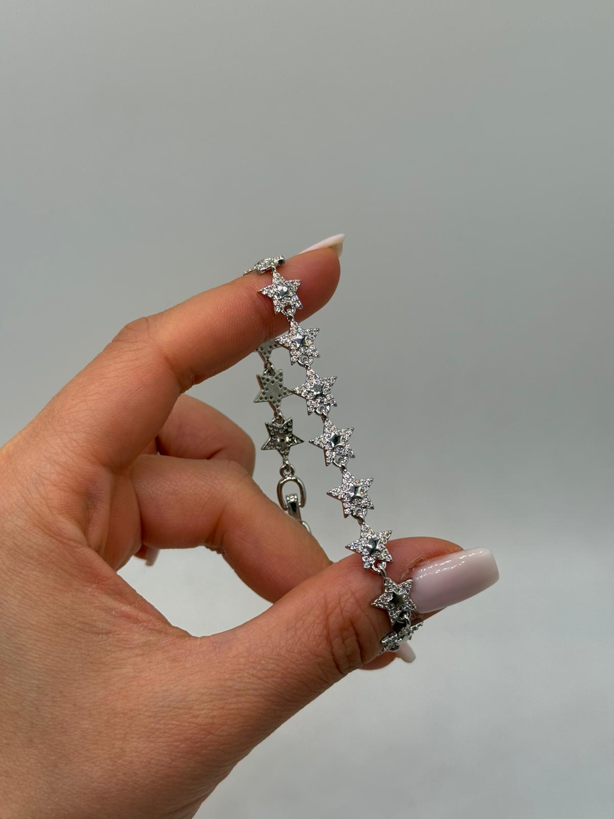 Şıklığı ve zarafeti bir arada sunan bu VIP çelik bileklik, sıralı yıldız motifleri ve taşlı detaylarıyla bilekte etkileyici bir ışıltı oluşturur. Her bir yıldız formu, ışığı güçlü şekilde yansıtarak modern ve feminen bir görünüm kazandırır.