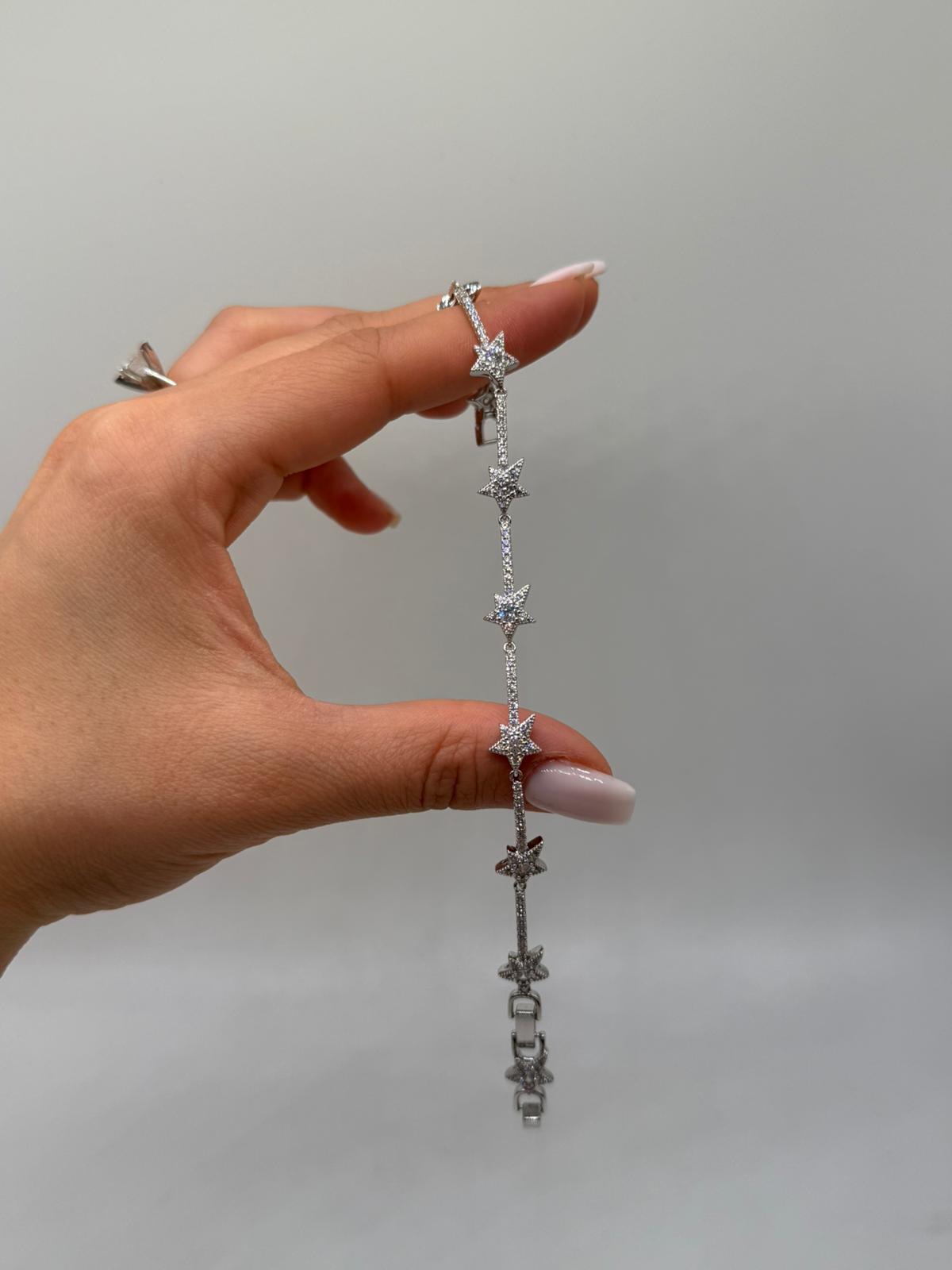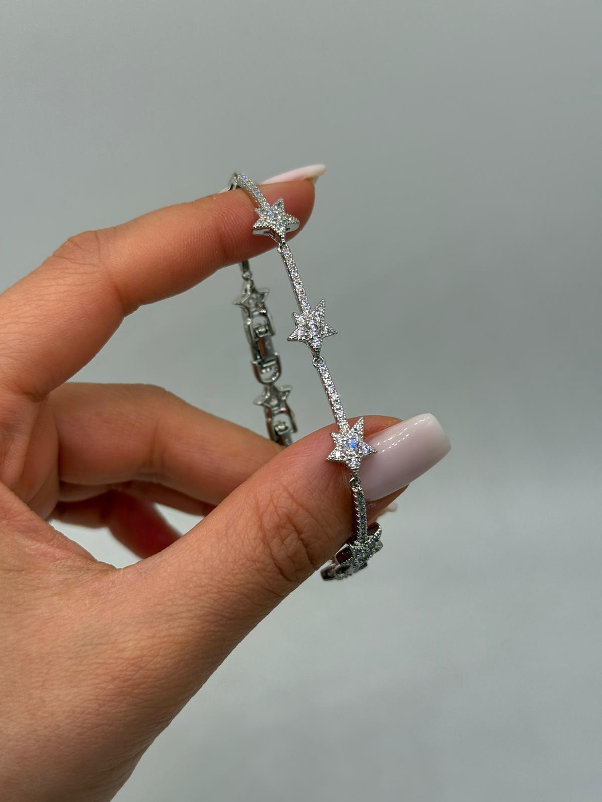 Modern ve zarif yıldız motiflerinden ilham alınarak tasarlanan bu VIP çelik bileklik, ince formu ve dengeli taş yerleşimiyle dikkat çeker. Yıldız figürlerinin içi ve bağlantı kısımlarında kullanılan zirkon taşlar, ışığı güçlü şekilde yansıtarak sofistike bir ışıltı oluşturur.