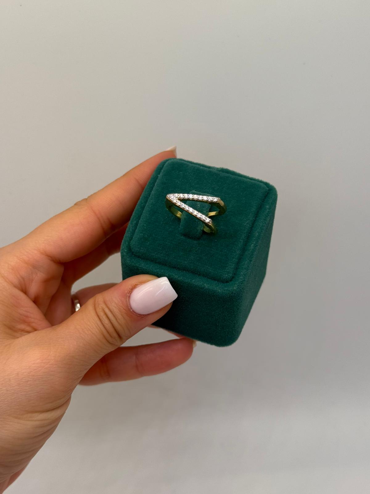 Modern çizgilerle tasarlanmış Zarif Kesişim Pırlanta Yüzük, iki bandın akıcı bir formda birleşmesiyle zamansız bir şıklık sunar. Işıltılı pırlanta detayları, altının sıcak tonuyla dengelenerek hem günlük kullanımda hem de özel anlarda sofistike bir görünüm sağlar. Minimal ama dikkat çekici tasarımı sayesinde tek başına güçlü bir stil ifadesi yaratır, aynı zamanda diğer takılarla da kolayca uyum sağlar. Zarafeti sadelikte arayanlar için tasarlandı.