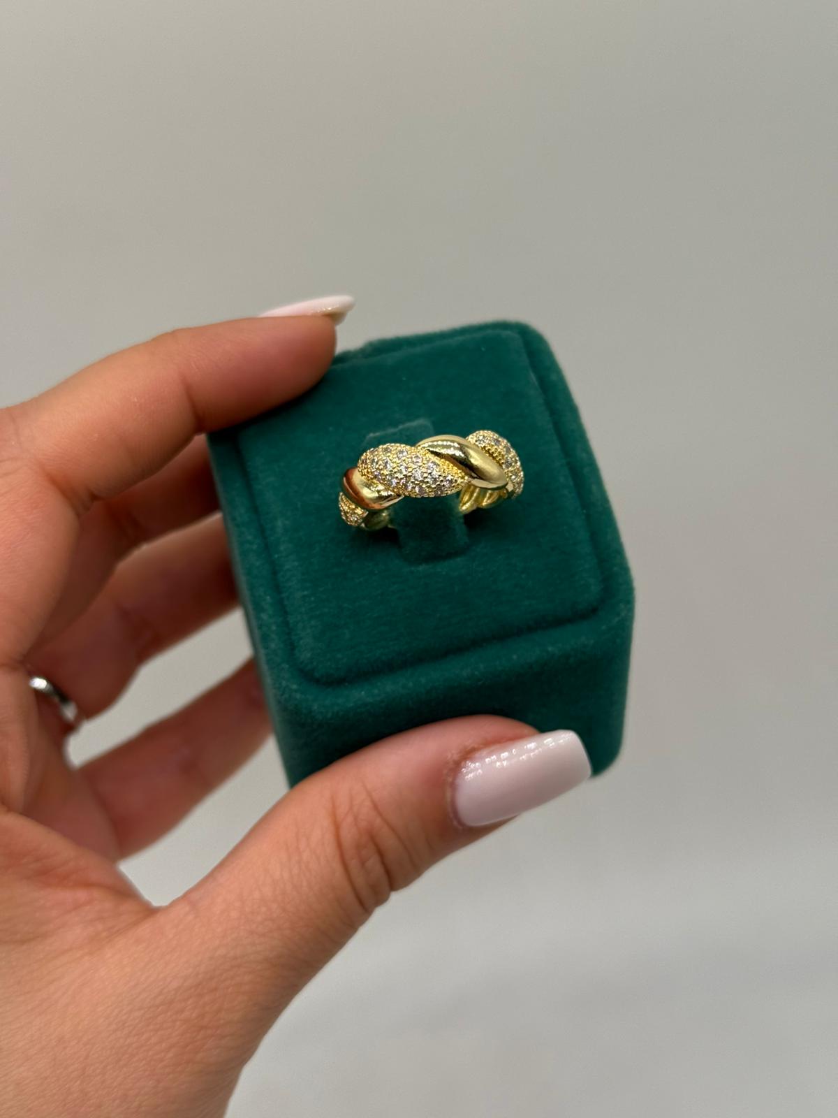 Xuping zincir model taşlı yüzük, modern zincir formu ve yoğun zirkon taş kaplamasıyla güçlü ve şık bir duruş sunar. Birbirine geçmeli halka detayları, yüzüğe hem hareketli hem de sofistike bir görünüm kazandırır. Altın renk kaplaması ve ışıltılı taşları sayesinde tek başına bile dikkat çekici bir aksesuar olarak öne çıkar. Günlük kombinlerden özel davet şıklığına kadar geniş bir kullanım alanına sahiptir.
