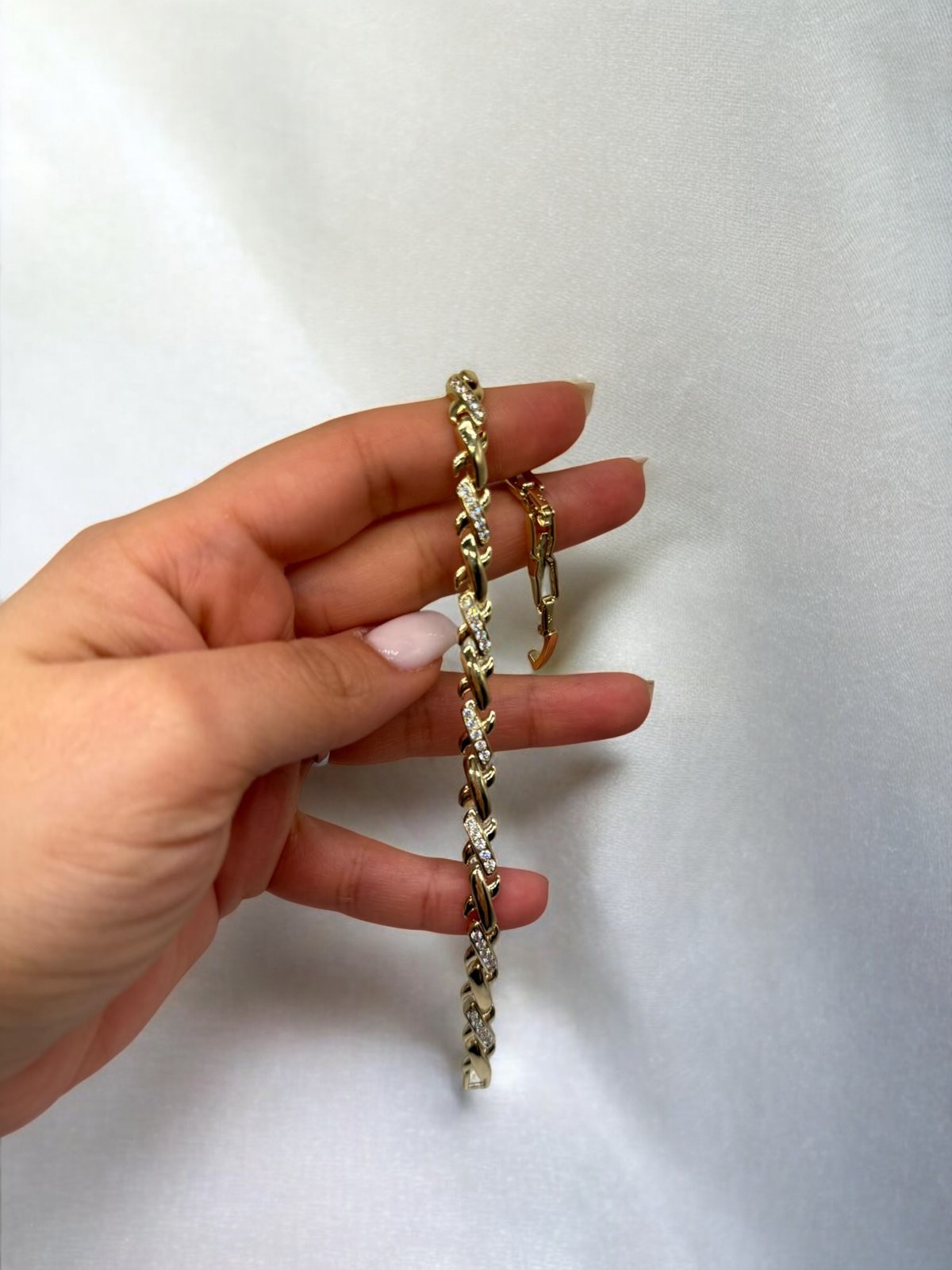 Zirkon Detaylı Klasik Zincir VIP Çelik Bileklik, modern zincir formunu zarif zirkon taşlarla birleştiren güçlü bir tasarıma sahiptir. Parlak taşlı halkalar, bilek üzerinde dengeli bir ışıltı sunarken sade ama lüks bir görünüm oluşturur.
