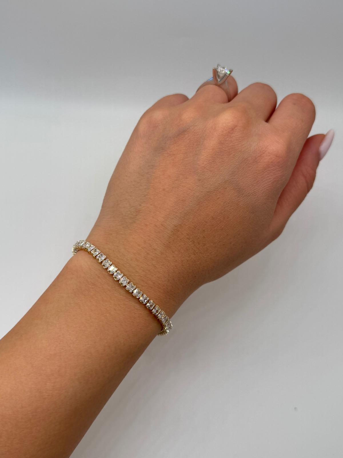Zamansız şıklığın vazgeçilmez parçası olan Xuping zirkon taşlı tennis bileklik, tek sıra dizilmiş parlak zirkon taşlarıyla bilekte zarif ve net bir ışıltı sunar.