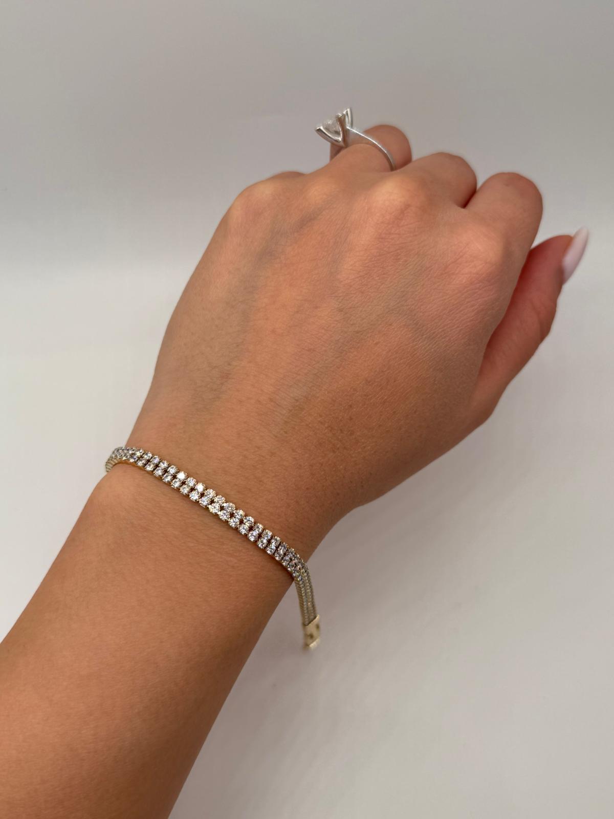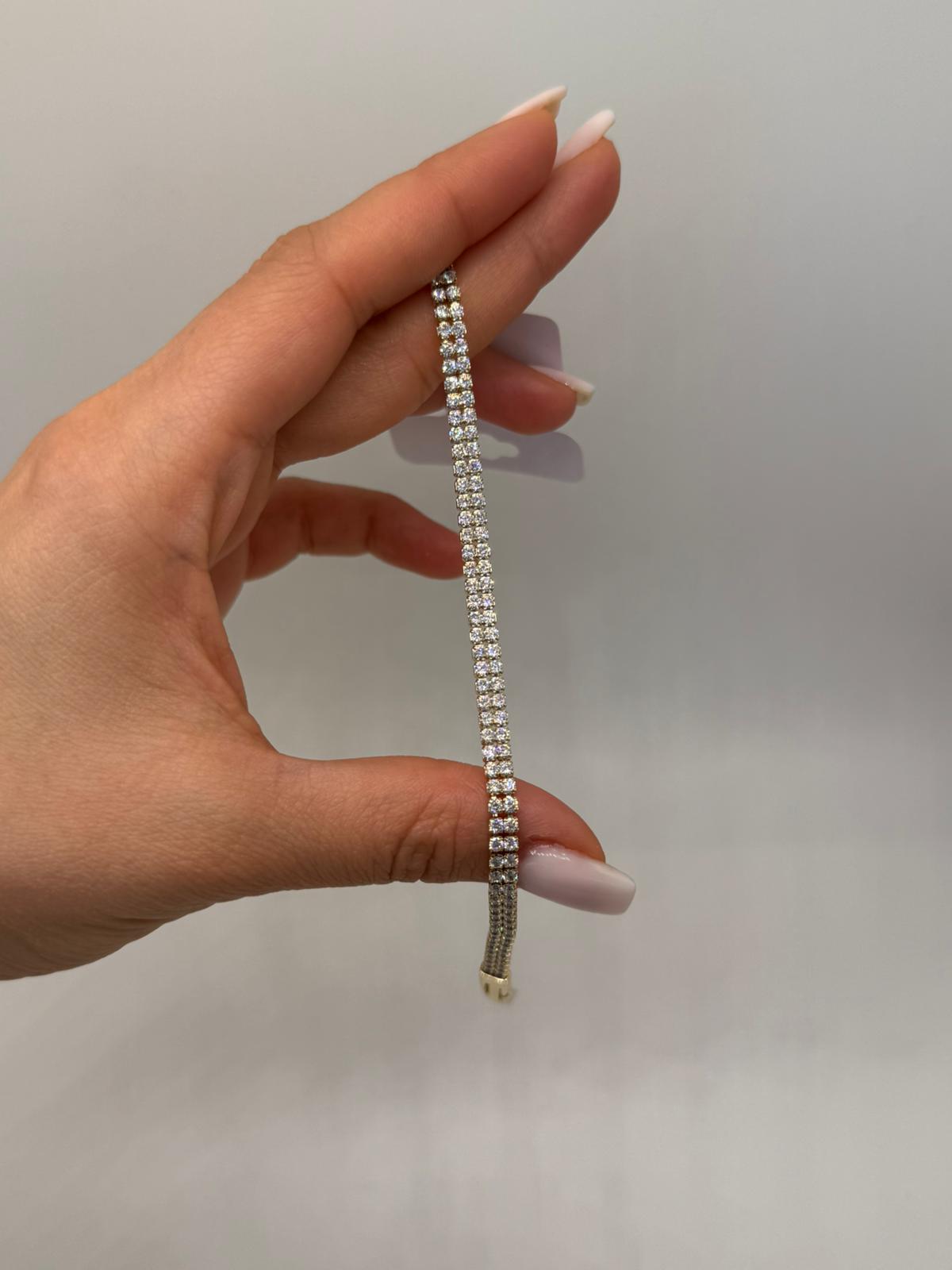 Klasik ve zamansız tasarımıyla öne çıkan Xuping zirkon taşlı tennis bileklik, sık dizilmiş parlak zirkon taşları sayesinde bilekte yoğun ve güçlü bir ışıltı sunar.