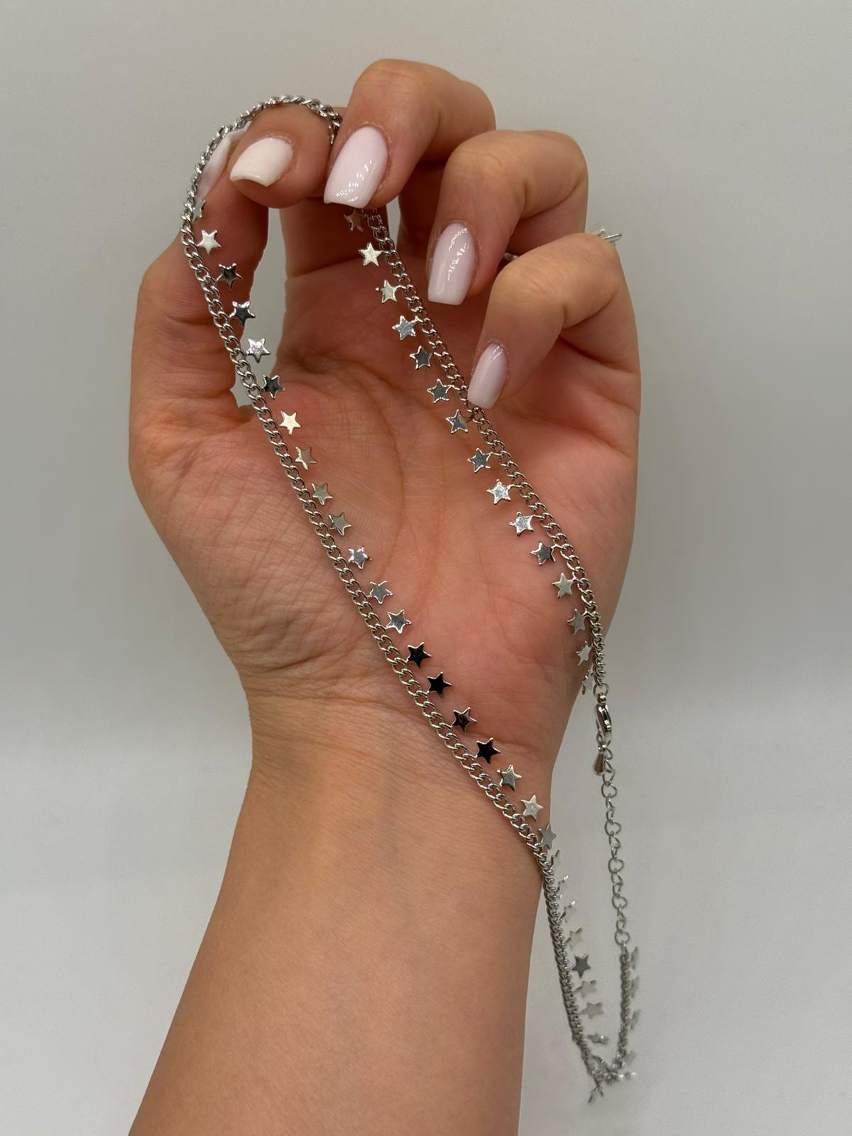 Yıldız Işıltısı Xuping Kolye, zincir boyunca sıralanan yıldız figürleriyle hareketli ve dikkat çekici bir tasarım sunar. Parlak gümüş rengi kaplaması sayesinde modern ve enerjik bir görünüm kazanan bu model, tek başına kullanıldığında minimal şıklık yaratır, katmanlı kolye kombinlerinde ise stilinizi öne çıkarır. Günlük kullanıma uygun hafif yapısı ile rahat bir deneyim sunarken, genç ve dinamik tarzı sevenler için ideal bir aksesuardır.