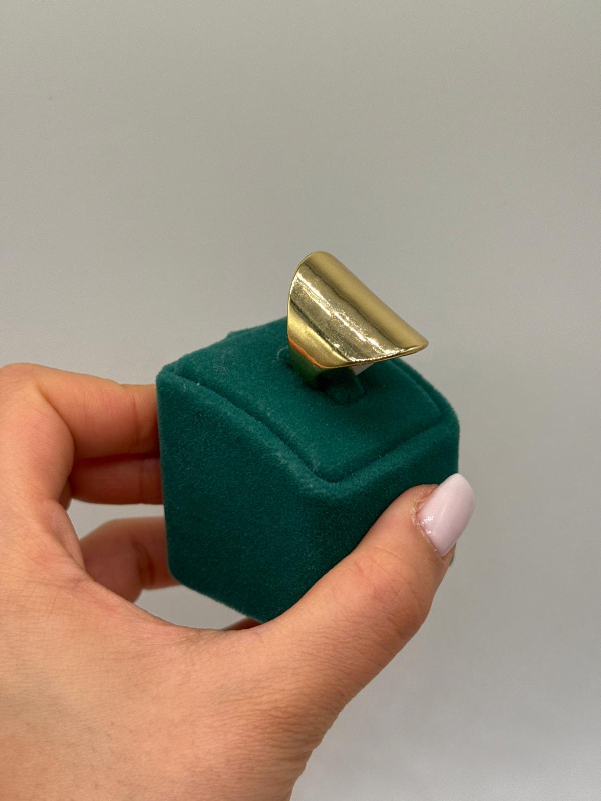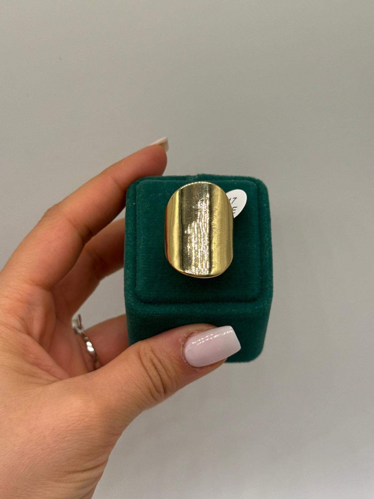 Sade çizgileri ve pürüzsüz yüzeyiyle öne çıkan bu minimal plaka yüzük, modern stilin güçlü bir temsilcisidir. Abartıdan uzak tasarımı sayesinde zamansız bir şıklık sunar ve her kombinle kolayca uyum sağlar.