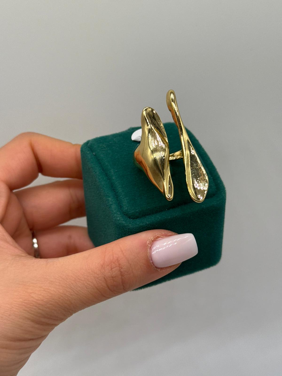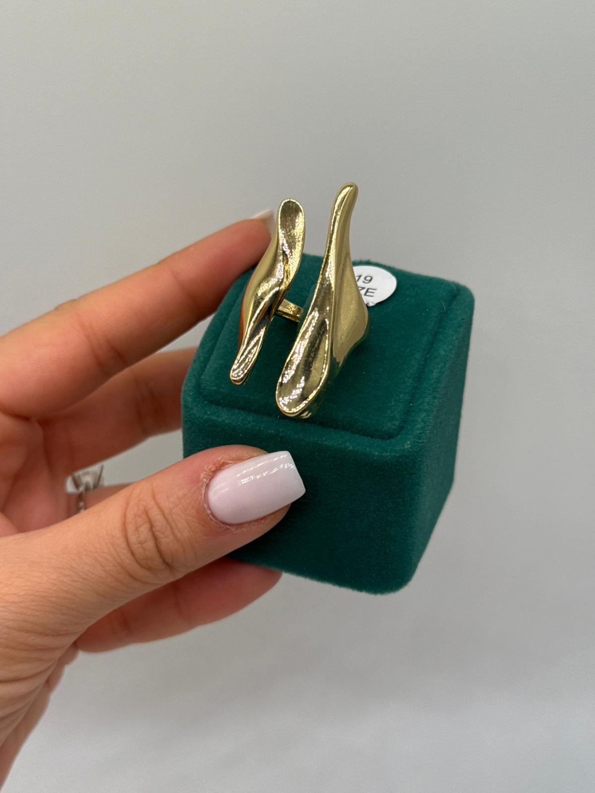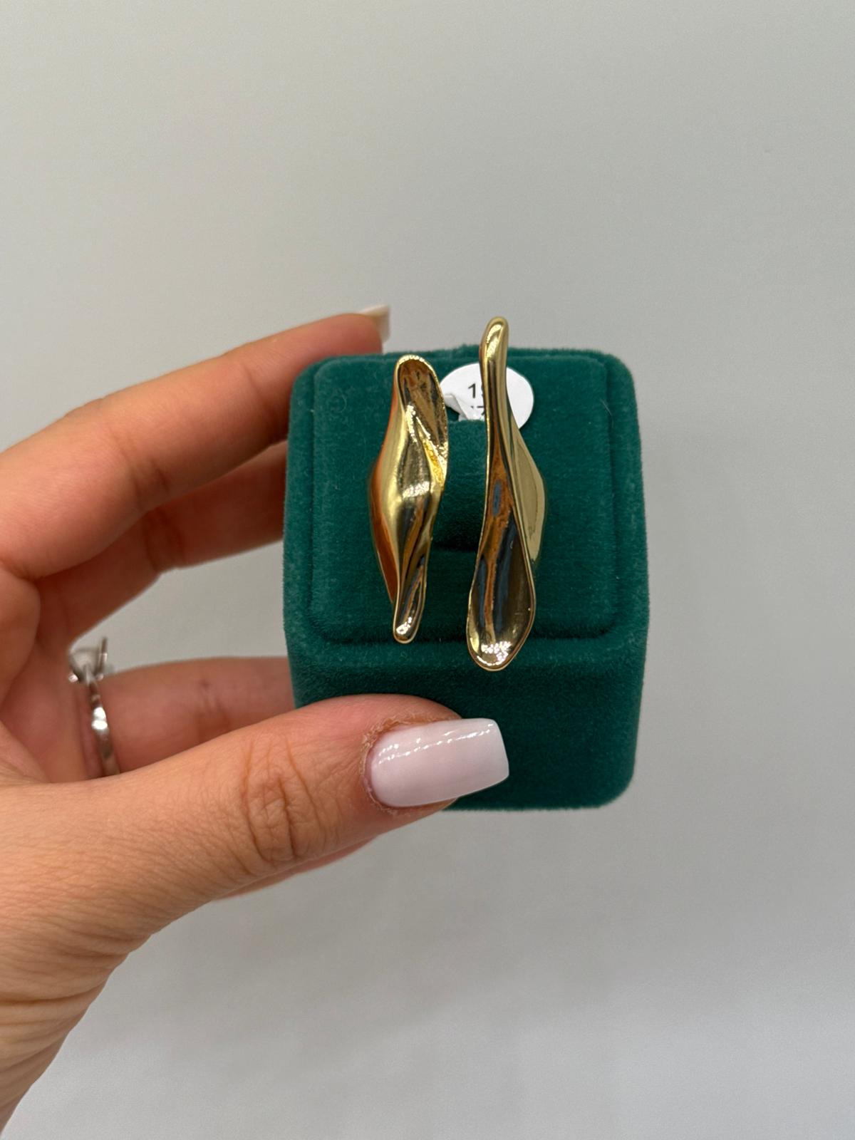 Akışkan ve asimetrik formuyla tasarlanan bu gold küpe, modern stilin zarif bir yansımasıdır. Parlak yüzeyi sayesinde ışığı estetik bir şekilde yansıtarak yüz hatlarını ön plana çıkarır.