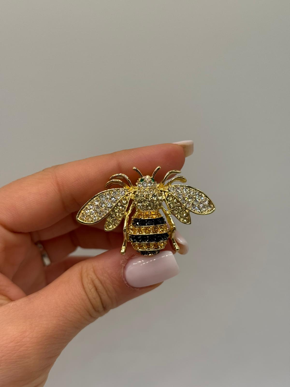 Gücü, çalışkanlığı ve bereketi simgeleyen arı figüründen ilham alınarak tasarlanan bu özel broş, göz alıcı detayları ve ışıltılı görünümüyle öne çıkar. Altın renk metal üzerine işlenen siyah ve sarı tonlar, tasarıma canlılık ve zarafet kazandırır. Kanat ve gövde kısmında kullanılan taşlar, broşa güçlü bir parlaklık ve şık bir duruş sunar.