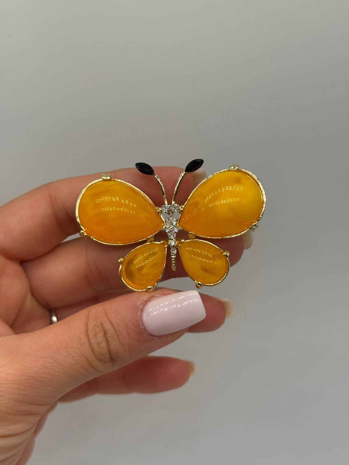 Canlı sarı tonları ve zarif kelebek formuyla öne çıkan bu özel tasarım broş, şıklığı ve kaliteyi bir arada sunar. Gövde kısmında kullanılan yüksek kalite zirkon taşlar, profesyonel mıhlama tekniği ile sabitlenmiştir. Bu sayede taşlarda dökülme, gevşeme veya düşme kesinlikle yaşanmaz.