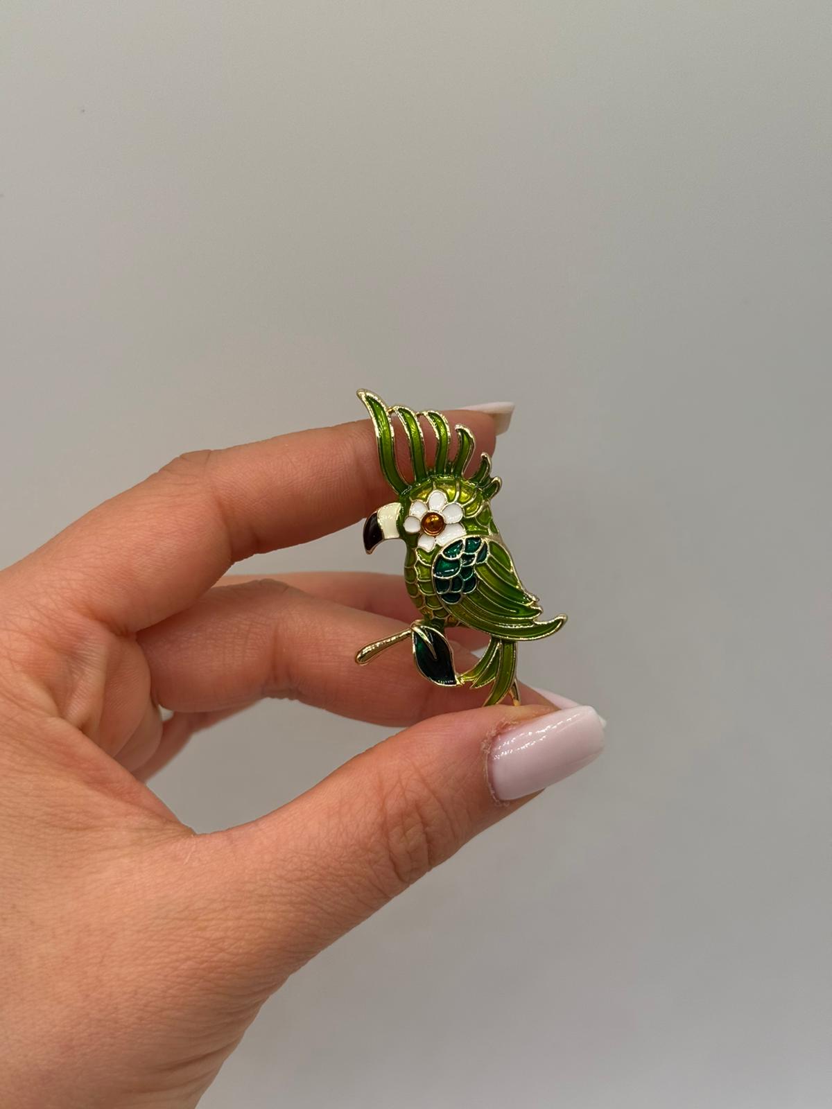 Doğadan ilham alan zarif tasarımıyla öne çıkan yeşil papağan figürlü broş, canlı mine renkleri ve ince detaylarıyla stilinize enerjik bir dokunuş katar. Üzerinde kullanılan yüksek kalite zirkon taşlar, profesyonel mıhlama tekniği ile sabitlenmiştir. Bu sayede taşlarda dökülme, gevşeme veya düşme yaşanmaz.